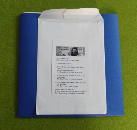 In den Briefumschlag kannst du die Olchi-Geschichte legen. Dann geht nichts verloren!