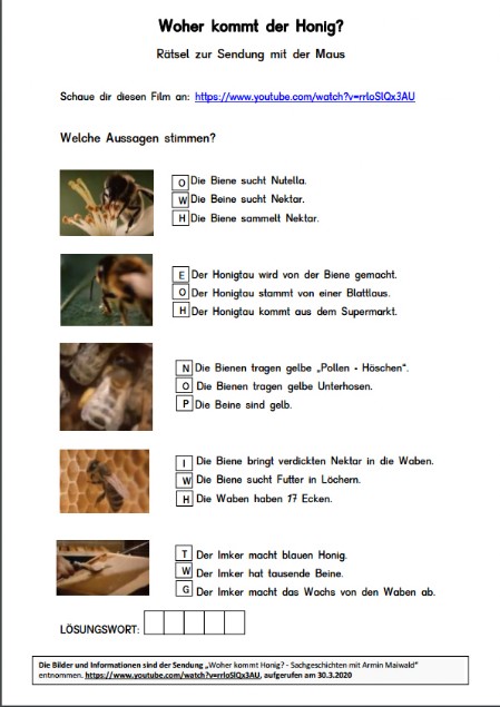 Thema: "Woher kommt der Honig?"