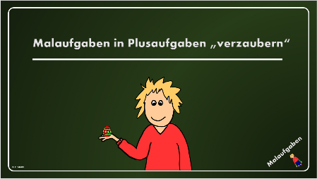 In diesem 2. Lernvideo zum Malnehmen "verzaubern" wir Malaufgaben in Plusaufgaben und rechnen sie aus.