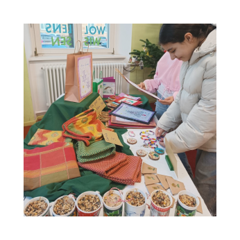 Wochenlang wurde gebastelt, gefaltet und gemalt! So entstanden zahllose kleine Kunstwerke, von Adventslicht bis Vogelfutter! Aber auch für das leibliche Wohl war gesorgt! Kinder der 4a rührten fleißig Teig und backten köstliche Waffeln. Zahllose Kuchen würden von fleißgen Eltern gespendet und zusammen mit Glühwein und Punsch vom Elternbeirat verkauft. Ein herzliches Dankeschön allen fleißigen Helferinnen und Helfern!
