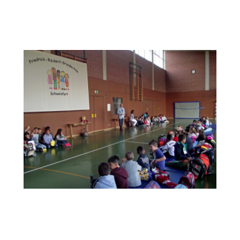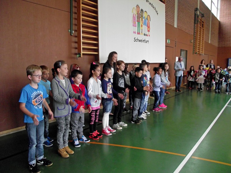 Die Übergabe an die Kinder erfolgte im Beisein des Schulreferenten der Stadt Schweinfurt Jürgen Montag. Schulleiter Günther Leo Redolfi bedankte sich sehr herzlich bei der Sponsorin Aline Hildebrandt für das großzügige Geschenk.