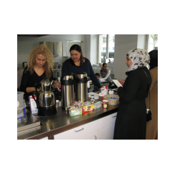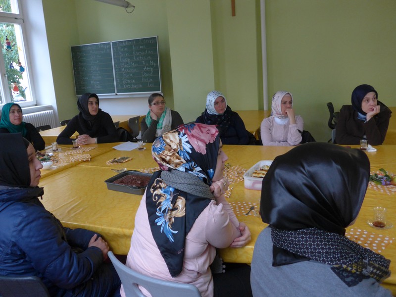 Am 21.10. folgten vormittags 13 türkische Mütter der Einladung von Frau Cetinkaya und Frau Staffort-Hartlieb zur 1. pädagogischen Teestunde in diesem Schuljahr. Frau Cetinkaya zeigte sehr eindrücklich, wie ein Schultag an unserer Schule abläuft und wie die Eltern ihre Kinder unterstützen können und sollen, damit der Schulstart gelingen kann. Unsere Jugendsozialarbeiterin Frau Hofmann stellte ihre Arbeit an der Friedrich-Rückert-GS vor, wohnte dem Vormittag bei und stand wie immer für persönliche Fragen zur Verfügung. Darüber hinaus kamen auch spezielle Anliegen der Mütter zur Sprache, die wir zu gegebener Zeit im Kollegium weiter diskutieren werden.
