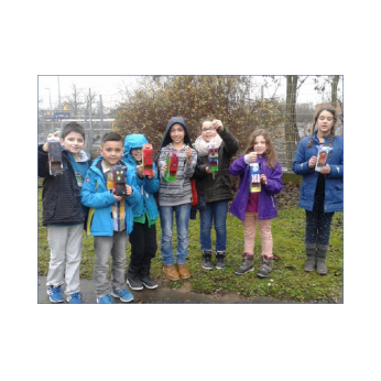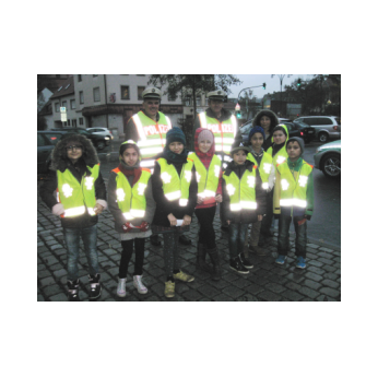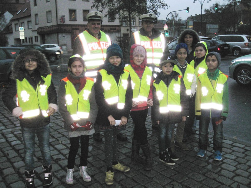 Dunkelheit und Regen hielten einige ausgewählte Kinder der Ganztagsklasse 4b mit ihrer Lehrerin Frau Slesinski nicht davon ab, sich frühmorgens noch vor Schulbeginn für eine gute Sache einzusetzen. Zusammen mit der Polizei sprachen sie Eltern und Kinder an, die mit dem Auto zur Schule kamen. Sie wollten einen Denkanstoß geben, ob das Bringen der Kinder mit dem Auto wirklich nötig sei. Zum einen ist es für die Schüler gesünder, den Weg zu Fuß zurückzulegen. Zum anderen entstehen durch das hohe Verkehrsaufkommen am Morgen auf dem doch sehr kleinen und unübersichtlichen Parkplatz immer wieder sehr gefährliche Situationen beim Aussteigen und Überqueren. Ein herzliches Dankeschön an die kleinen und großen Helfer der Aktion!
