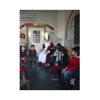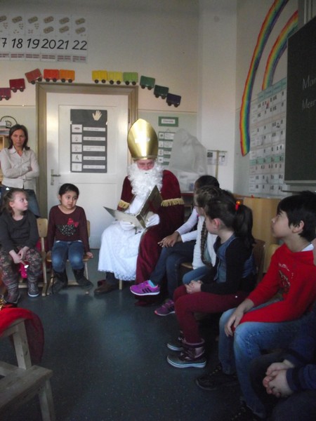 Wie jedes Jahr kam der Nikolaus zu uns an die Friedrich-Rückert-Schule. Bei seinen Besuchen in jeder Klasse las er natürlich auch aus seinem goldenen Buch vor, was den Kindern besonders gut gelingt und wo sie bis zum nächsten Jahr noch etwas verbessern können. Selbstverständlich hatten die Klassen auch etwas für den Nikolaus vorbereitet: ein Nikolauslied oder ein kleines Gedicht. Bevor der Nikolaus zur nächsten Klasse weiterzog, ließ er für die Kinder einen großen Sack mit kleinen Geschenken da.