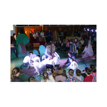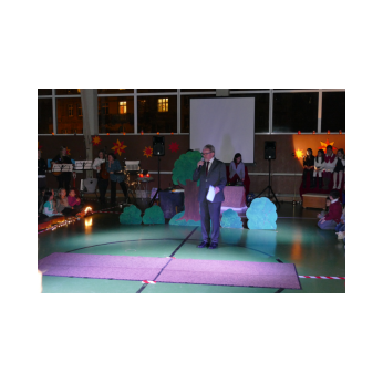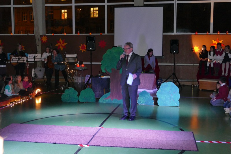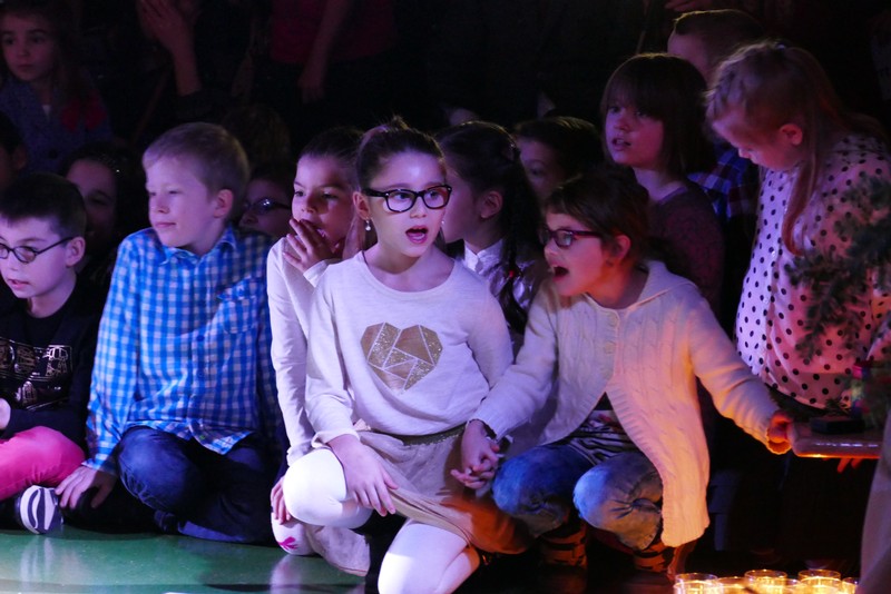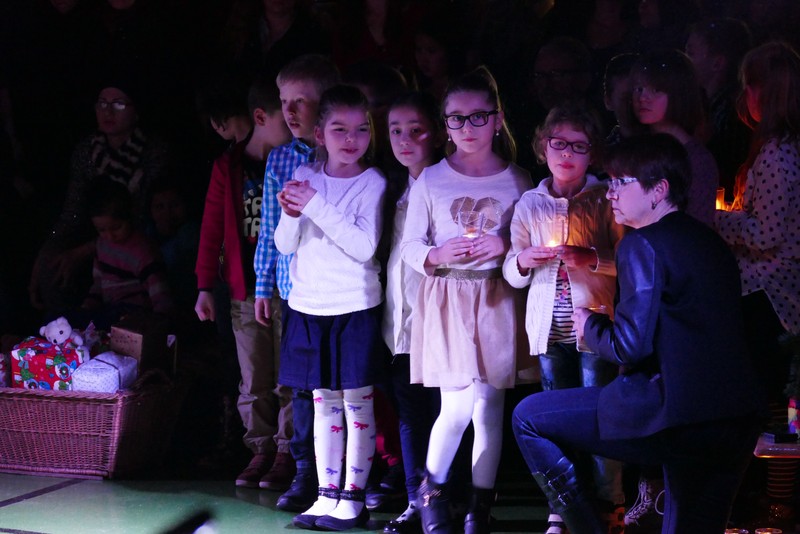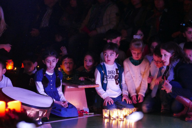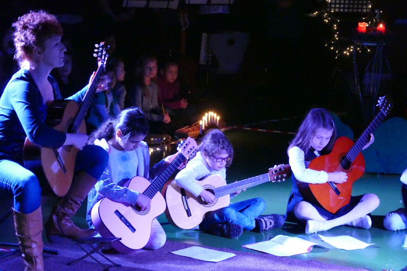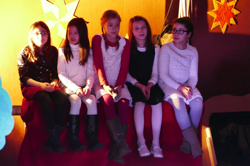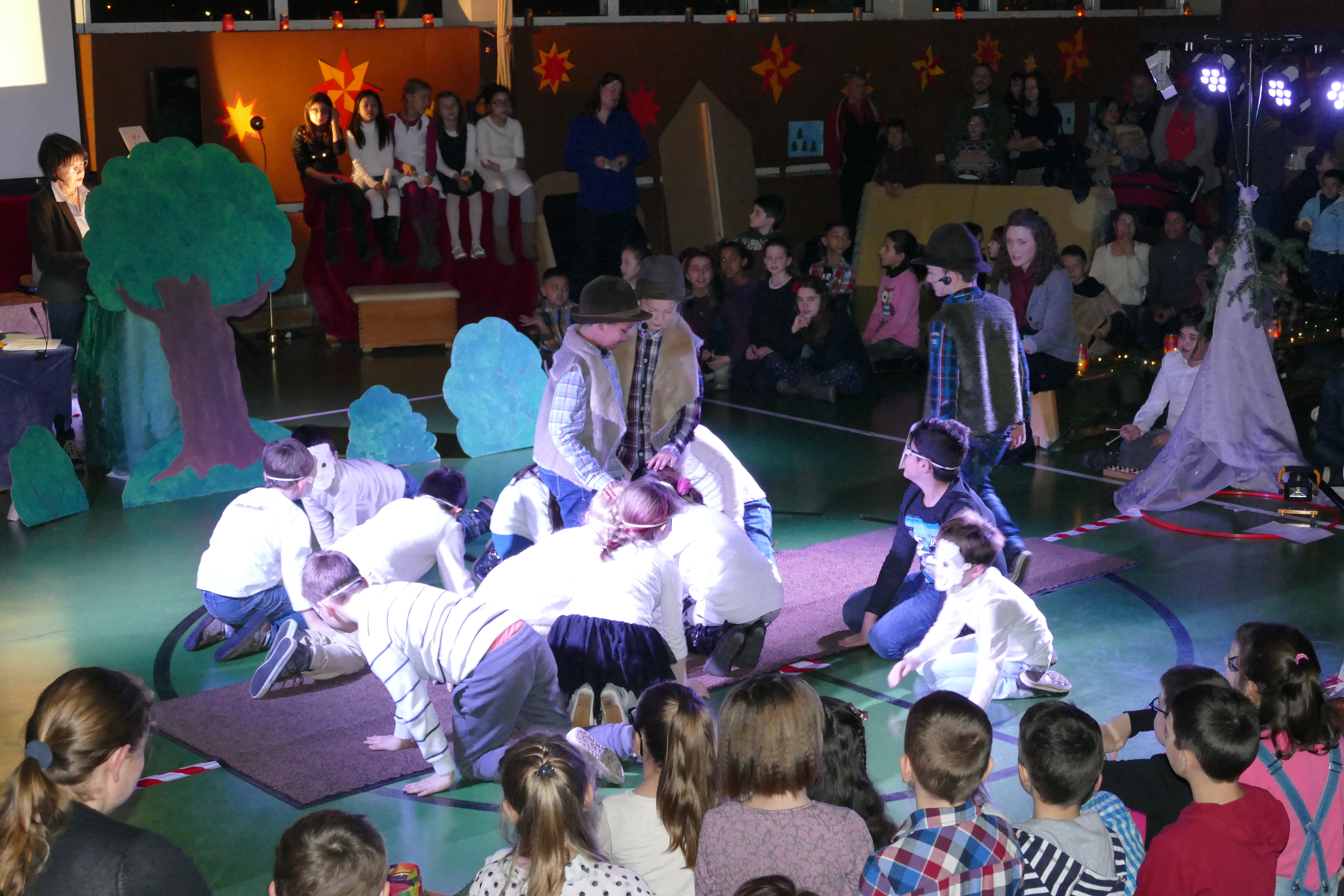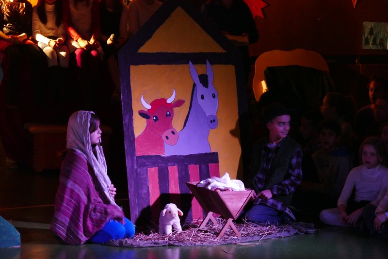 Die diesjährige Weihnachtsfeier stand ganz im Zeichen des Lichts. So setzte erstmals eine professionelle Lichtanlage Schauspieler, Sprecher und Musiker ins rechte Licht. Im Theaterstück "Die vier Lichter des Hirten des Simeon" zog sich das Licht der Kerzen wie ein roter Faden durch die Geschichte. Als ein kleines Schäfchen verloren geht, machen sich die beiden Kinder auf die Suche. Eine Laterne mit vier Kerzen soll ihnen dabei helfen. Auf ihrem Weg treffen sie Menschen und Tiere, die sie mit einem Licht der Nächstenliebe beschenken. Schließlich findet sich das verlorenen Schäfchen beim Jesuskind in der Krippe. "Auch bei uns soll Licht sein. An unserer Schule lernen und spielen Kinder aus verschiedenen Kulturen miteinander", so Schulleiter Herr Redolfi. "Wir wollen das Licht weitergeben. Kinder und Eltern haben Päckchen gepackt, die an Kinder in Not weitergegeben werden."