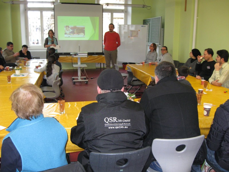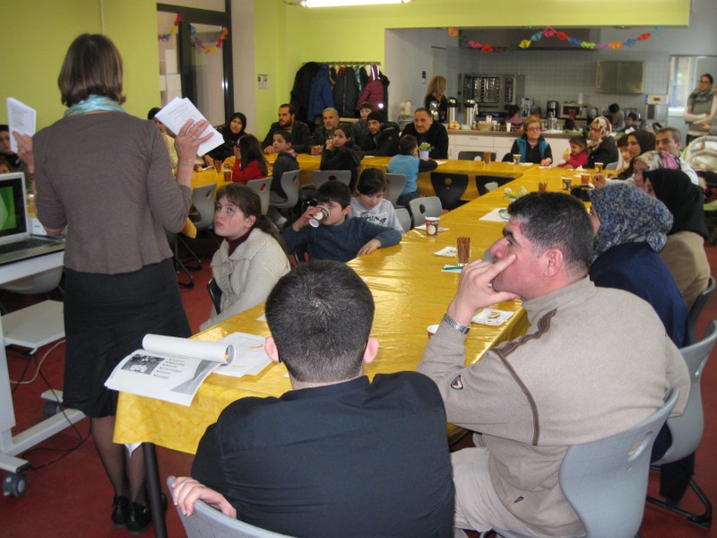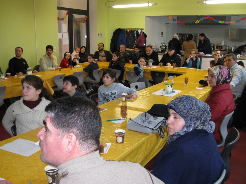 Seit Beginn des Schuljahres kamen immer wieder syrische Kinder neu an unsere Schule. Um ihnen die Eingewöhnung und das Lernen zu erleichtern und auch die Eltern willkommen zu heißen, setzten wir uns das Ziel, Eltern und Kinder gemeinsam an einem Nachmittag einzuladen, um uns gegenseitig noch besser kennenzulernen und vor allem auch den Vätern und Müttern zu beschreiben, wie ein Schultag an der Friedrich-Rückert-Grundschule abläuft. Die schriftliche Einladung wurde von Herrn Abdelsayed Melik ins Arabische übersetzt. Der Einsatz hat sich gelohnt: alle syrischen Familien nahmen am Eltern-Nachmittag teil. Nach der Begrüßung durch Herrn Redolfi erhielten die Eltern durch Frau Staffort-Hartlieb und den Schulleiter wichtige Informationen rund um das Thema Schule. Herr Melik übersetzte jeweils ins Arabische. Während die Grundschulkinder ebenfalls aufmerksam zuhörten, wurden die Vorschulkinder von Frau Cetinkaya, Lehrerin für Islamischen Unterricht in deutscher Sprache, betreut. Nach der persönlichen Vorstellung der Jugendsozialarbeiterin Frau Hofmann und einer kleinen Fragenrunde überreichte der Schulleiter Herrn Melik einen Buchgutschein und sprach ihm seinen Dank für seinen Einsatz als Dolmetscher, vor allem auch bei der Übersetzung des Elternfaltblattes Wie wird mein Kind schulfähig? aus. Anschließend kam es noch zu zahlreichen kleinen Gesprächen zwischen Elternhaus und Lehrkräften. Den direkten Kontakt zu unseren Eltern suchte auch die stellvertretende Schulleiterin Frau Slesinski. Für das leibliche Wohl sorgte in bewährter Weise wieder unser Elternbeirat unter der Leitung von Frau Dr. Böckler. Ein besonderes Dankeschön gebührt Frau Staffort-Hartlieb für ihr bewährtes und ausdauerndes Engagement bei der Vorbereitung und Durchführung pädagogischer Elterncafés an unserer Schule.