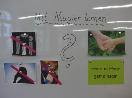 Am 11. Mai hieß Herr Redolfi eine kleine Gruppe von Eltern willkommen, die sich zum Thema „Lernen lernen - Teil 3“ angemeldet hatten. Diesmal stand der Nachmittag, an dem auch die Kinder der anwesenden Eltern teilnehmen durften, unter dem Motto „Mit Neugier lernen“. Frau Merkl und Frau Staffort-Hartlieb hatten sich hierfür etwas Besonderes einfallen lassen und auf Grund der Anmeldungen mehrere Teilnehmer erwartet. Dennoch verlief der Nachmittag spannend und lebendig, da es u.a. auf dem Schulhof viel zu entdecken gab. Mütter und Kinder durften gemeinsam aktiv werden, was sichtbar Spaß machte, während die Kleinen von Frau Feser bestens betreut wurden. Vertreterinnen des Elternbeirats boten wie immer Gebäck und Getränke an. Allen Aktiven sei für ihr Engagement herzlich gedankt.