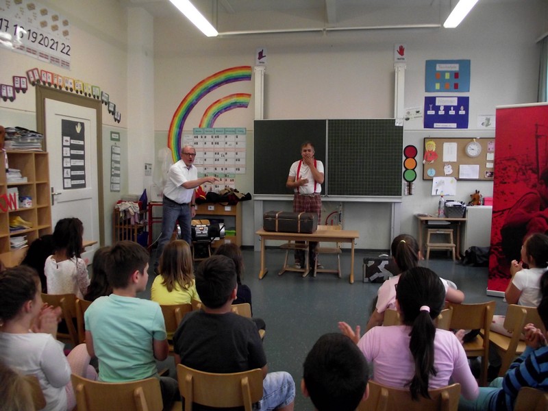 Vielen Dank an Clown Bonzo, Max und Molto für das lustige und bewegende Stück, an Frau Ute Hofmann (JaS) für die Organisation und für das Sponsoring des Rotary Clubs Peterstirn! Grützli mützli!