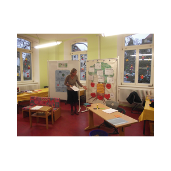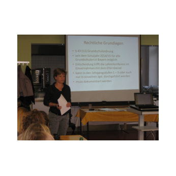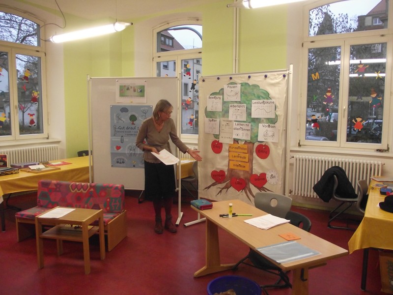 Zum Zwischenzeugnis 2016 werden die Schüler und Schülerinnen der 1. und 2. Klassen kein schriftliches Zeugnis mehr bekommen, sondern zusammen mit der Klassenlehrerin ein sogenanntes Lernentwicklungsgespräch über das eigene Lernen führen. Das Lehrerkollegium nutzte den unterrichtsfreien Buß- und Bettag deshalb in diesem Jahr für eine Fortbildung zu diesem Thema. Kompetent informierte als Referentin Frau Rektorin Kerstin Weber über Grundlagen und eigene Erfahrungen, bevor das Kollegium in Gruppen das Gehörte gleich in die Praxis umsetzte. Frau Weber ein herzliches Dankeschön für den informativen Input!