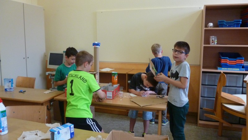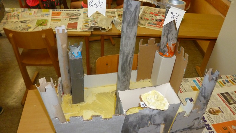 Da im HSU-Unterricht gerade das Thema „Bauen und Konstruieren“ aktuell war, beschlossen wir spontan in Gruppen aus Alltagsmaterialien Ritterburgen zu bauen. Aus einem kleinen Projekt entwickelte sich ein großes Projekt, bei dem nicht nur die Schüler, sondern auch viele Lehrer ihren Spaß hatten.