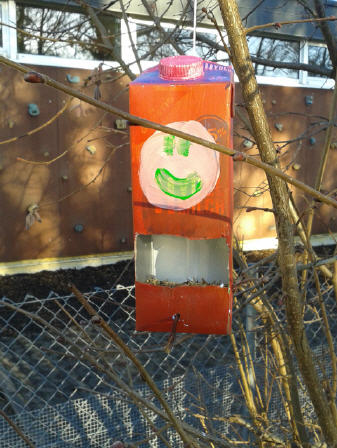 Auch an die Vögel, die im Winter in unserem Garten unter der Schneedecke kein Futter mehr finden konnten, wurde gedacht. Daher bastelten wir aus alten Milchtüten ein Vogelhäuschen und stellten eigene Meisenringe her.