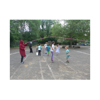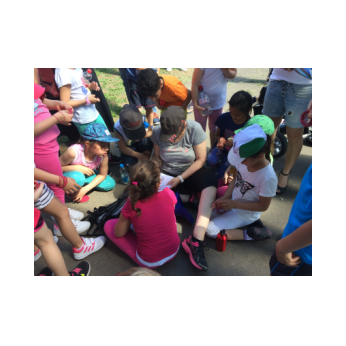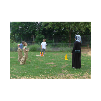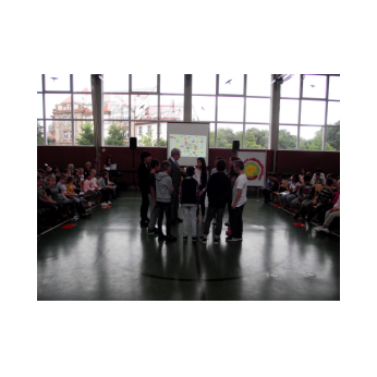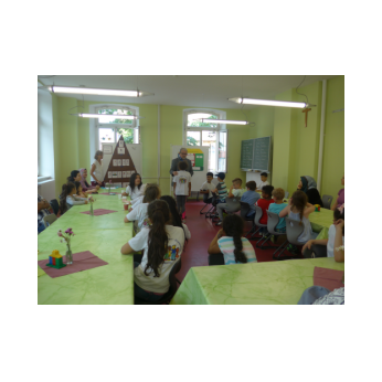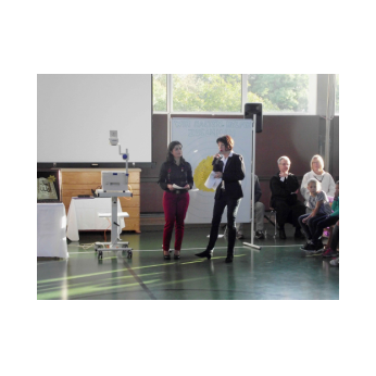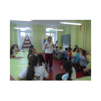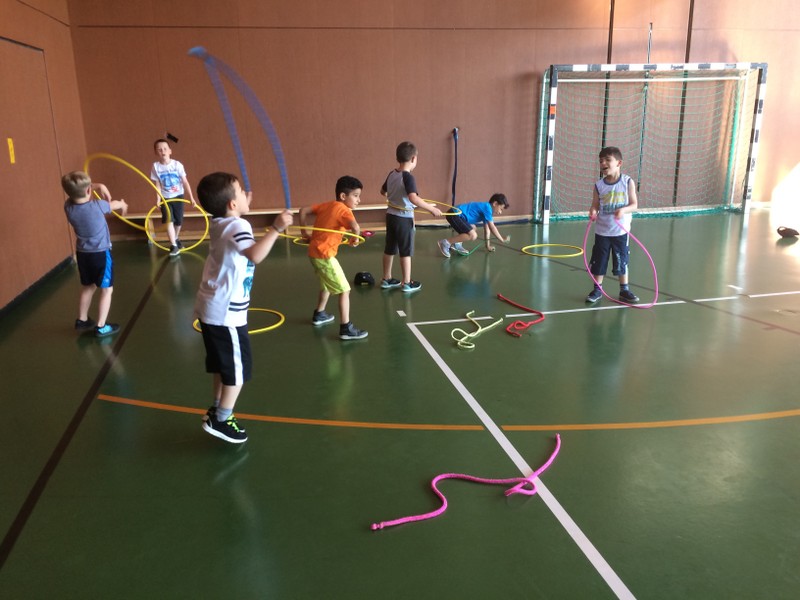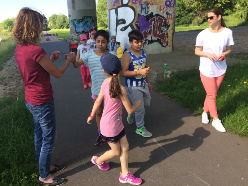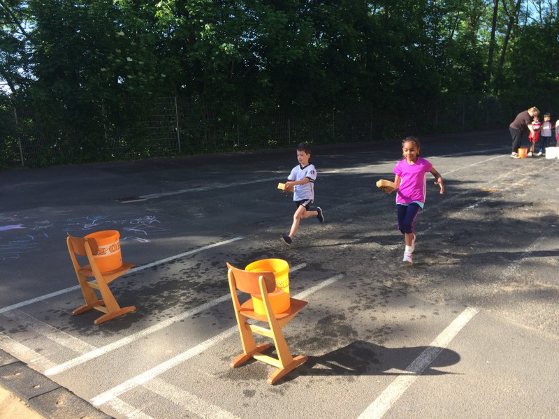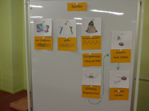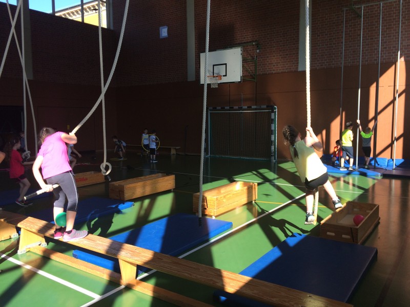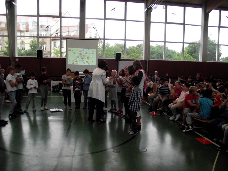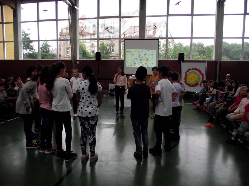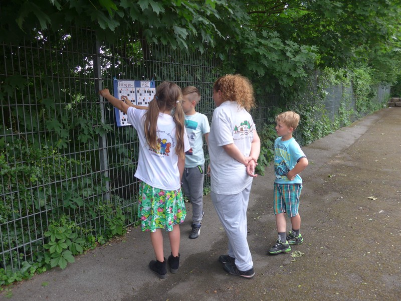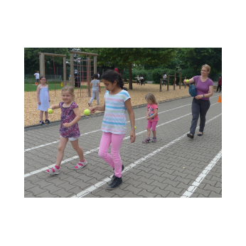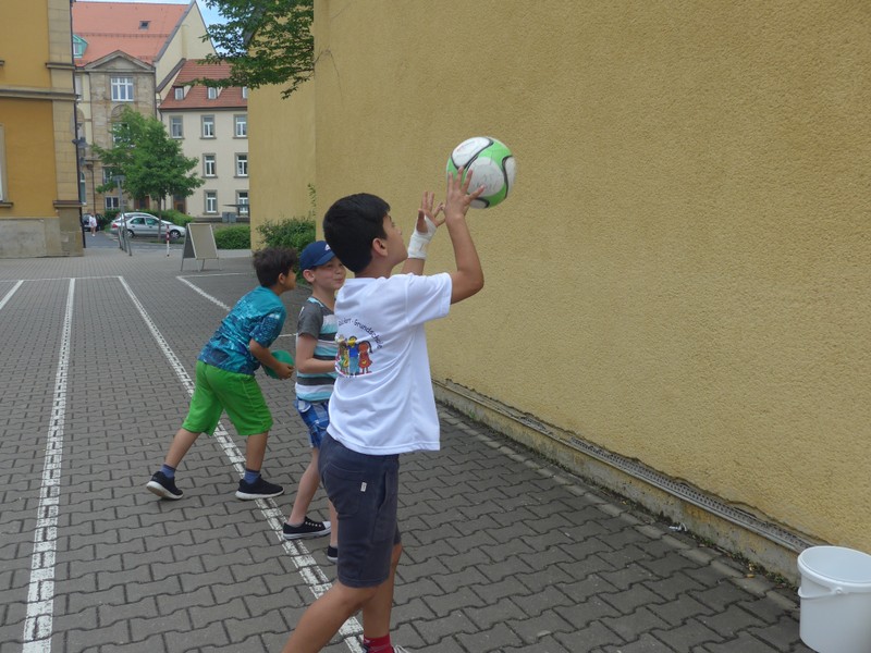 Bei Sommerhitze wurden interessierte Eltern mit ihren Kindern im Speisesaal von Schulleiter Herrn Redolfi begrüßt, um dort von Frau Staffort-Hartlieb zu erfahren, dass Bewegung neben Ernährung und Entspannung die dritte tragende Säule im "Haus der Gesundheit" darstellt und somit wesentlich zur gesunden und stärkenden Entwicklung unserer Kinder beitragen kann. Bereits am Vormittag hatte Frau Merkl mit den Kindern der Klasse 2b Obstsalat zubereitet und stellte nun konkret eine Bewegungspyramide in Bildern vor. Anschließend durften alle ob „Groß und Klein“ an den im Schulhof vorbereiteten Bewegungsstationen mit Spaß ihre Erfahrungen sammeln. Freiwillige Kinder der 4. Klassen halfen tatkräftig an den neun Stationen mit. Mit einer kurzen Entspannungsübung beschlossen Frau Staffort-Hartlieb und Frau Merkl den Nachmittag mit großem Dank an alle helfenden Hände: Frau Schabel für die Kinderbetreuuung, dem Ellternbeirat für Speis und Trank und unserem Hausmeister Herrn Wüst für die perfekte organisatorische Unterstützung.