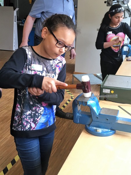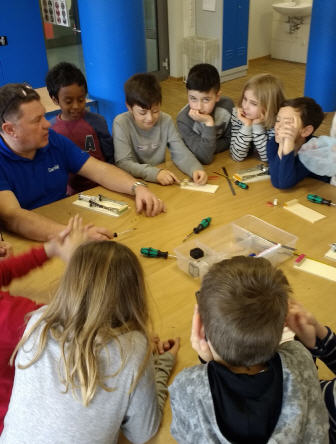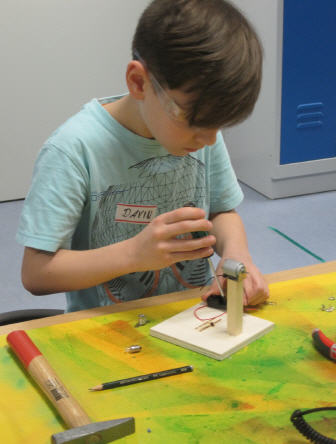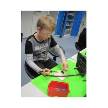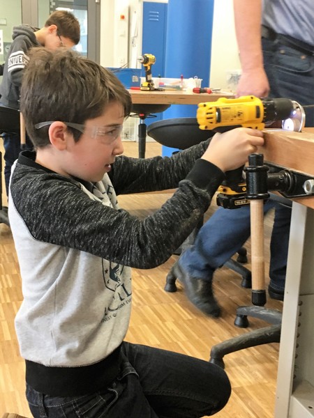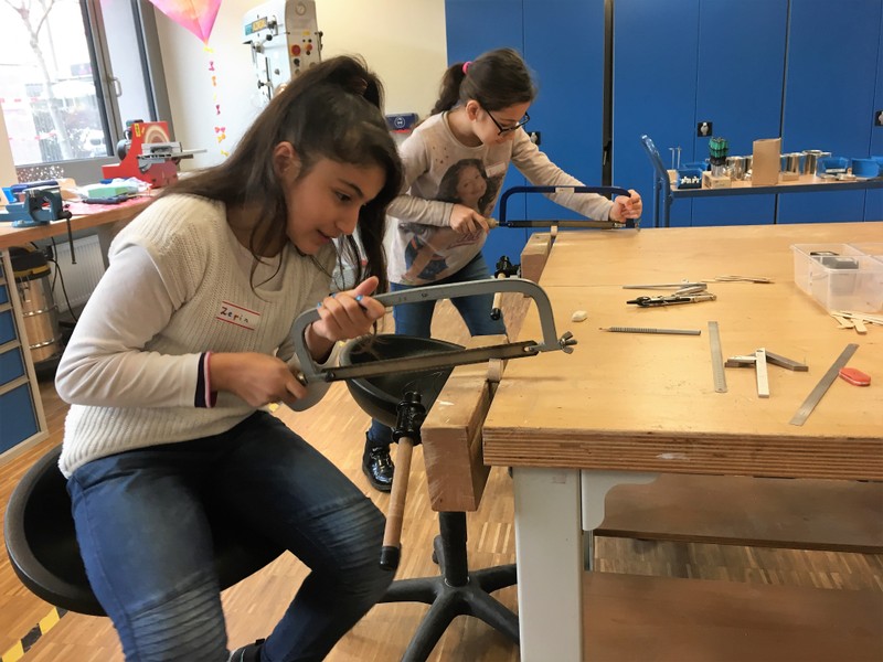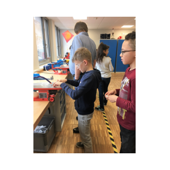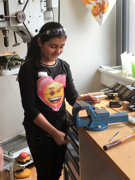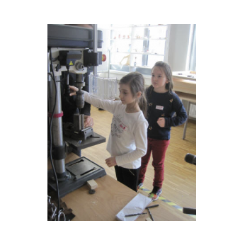 Die Angebote der Schweinfurter Wissenswerkstatt ergänzen dieses Konzept hervorragend. Daher waren die Klassen der dritten und vierten Jahrgangsstufe auch in diesem Schuljahr wieder mehrmals dort zu Besuch. Es wurde gesägt, gebohrt, gelötet, gehämmert und geschraubt. Begeistert über ihre tollen Werkstücke nahmen die Kinder u. a. Knatterboote, pneumatische Hebebühnen, magische Kreuze, LED-Roboter und Eislöffelturbinen mit nach Hause.