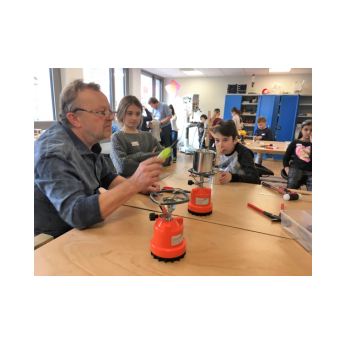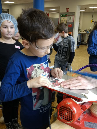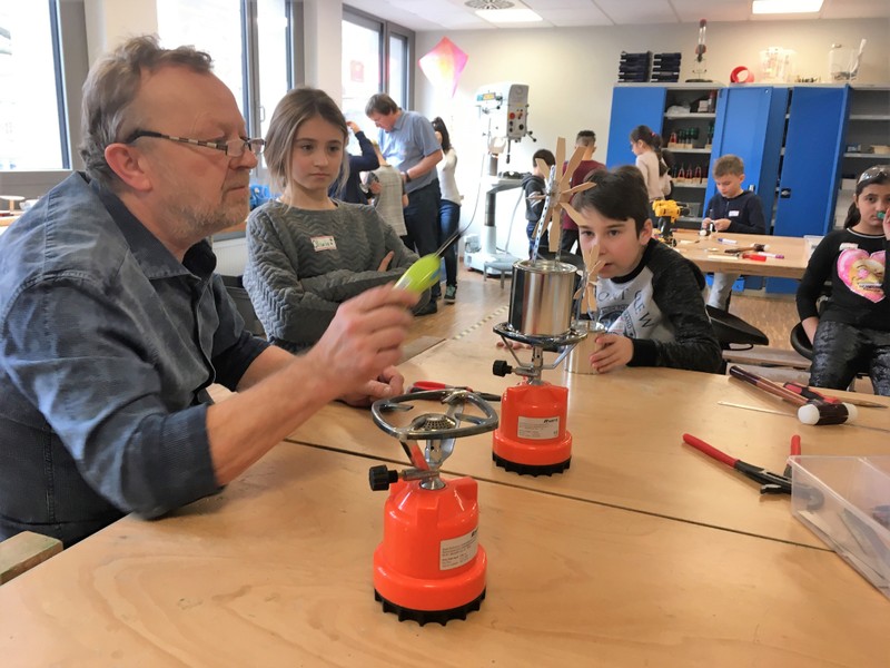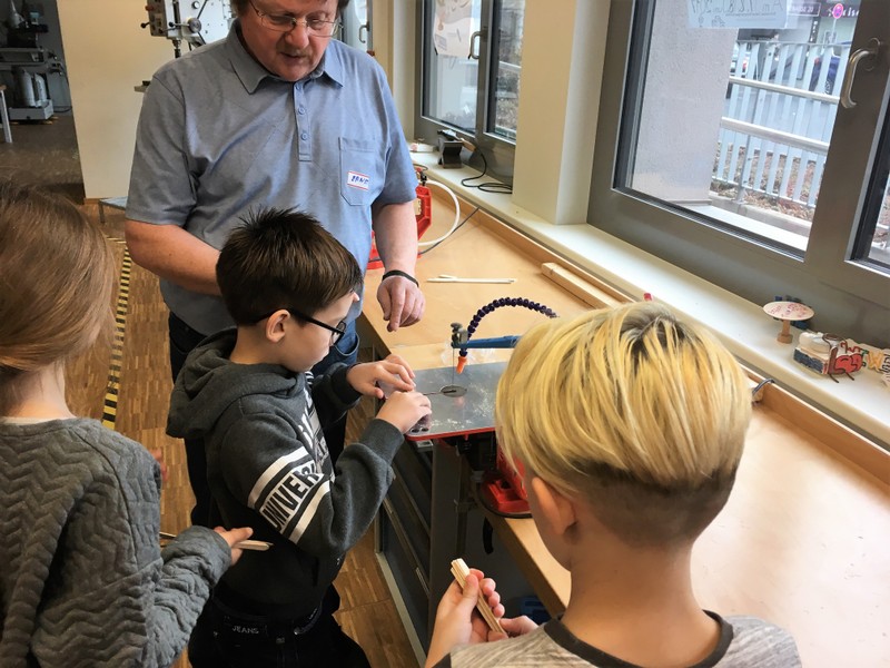 Die Klasse 4 a verbrachte im Januar mit ihrer Klassenlehrerin Frau Freunek einen spannenden Tag in der Wissenswerkstatt Schweinfurt zum Thema: „Dem Wasser auf der Spur – Wir bauen eine Eislöffelturbine“ Geduldig erklärten die ehrenamtlichen Betreuer die einzelnen Arbeitsschritte und leiteten die Kinder mit vielen Sicherheitshinweisen zur Arbeit mit Fuchsschwanz, Standbohrmaschine, Lötkolben usw. an. Nach geleisteter Arbeit konnten die Kinder stolz ihre Werkstücke ausprobieren und mit Dampf in Bewegung setzen!