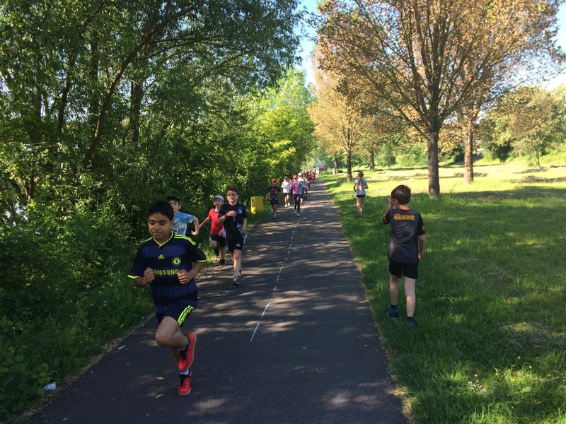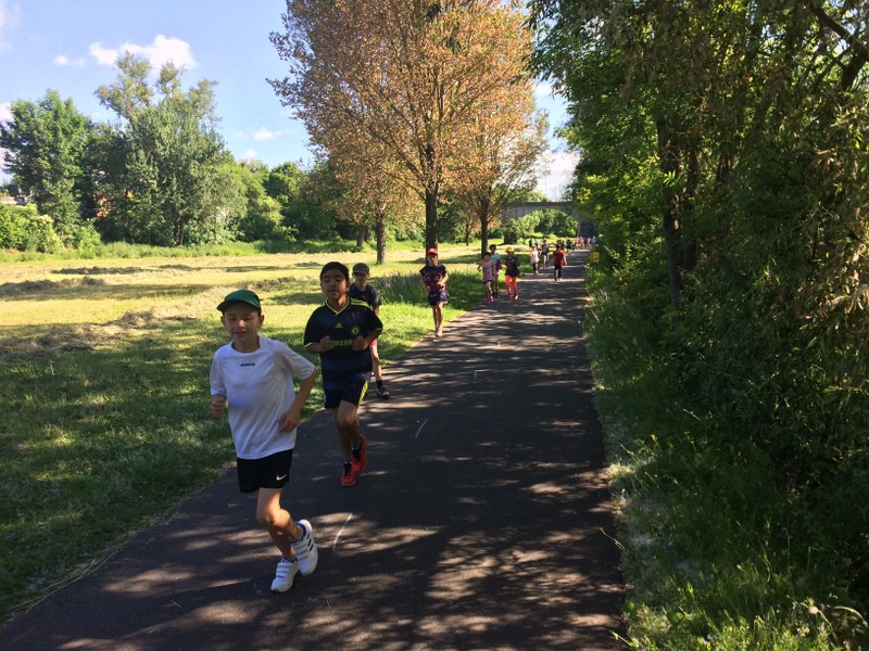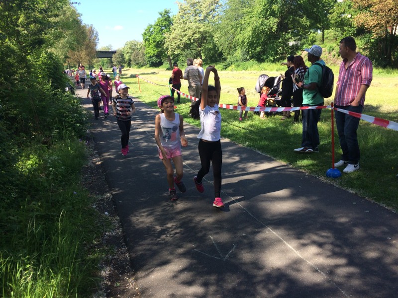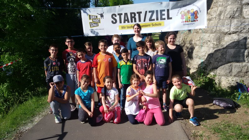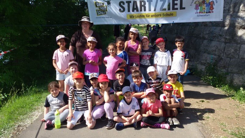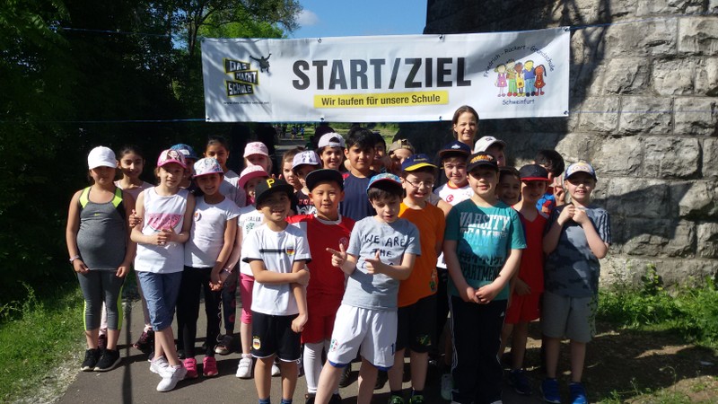 Bei wunderschönem Wetter fand unser zweiter Sponsorenlauf statt. Die Laufstrecke am Mainradweg von der Eisenbahn- bis zur Hahnenhügelbrücke war nur für uns geöffnet. Radfahrer wurden umgeleitet. Alle Schüler gingen hochmotiviert an den Start und erzielten aufgrund ihres ausdauernden Einsatzes hervorragende Laufergebnisse. Jeder Schüler hatte 45 Minuten Zeit möglichst viele Gummibänder zu erlaufen, für 250 Meter gab es ein Gummiband. Zu Hause sammelten die Kinder dann die zugesagten Spenden ein. Insgesamt kam eine großartige Spendensumme von 1136,50 € zusammen. Alle Schüler liefen gemeinsam 846,5 km. Ein großes Dankeschön gebührt dem engagierten Elternbeirat für die Verpflegung mit Obst, Gemüse und Getränken sowie allen Sponsoren und Zuschauern. Ein herzliches Dankeschön geht auch an alle Lehrkräfte, besonders an unsere Sportbeauftragte Frau Kärpf für die Organisation des Laufes.