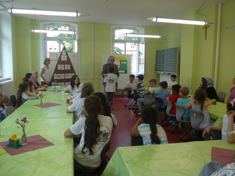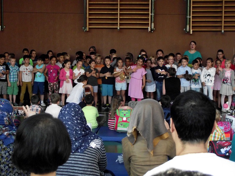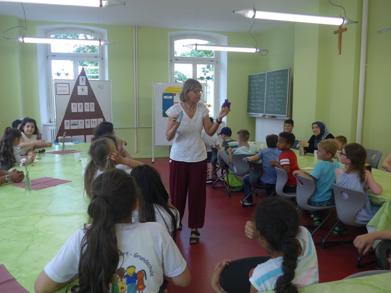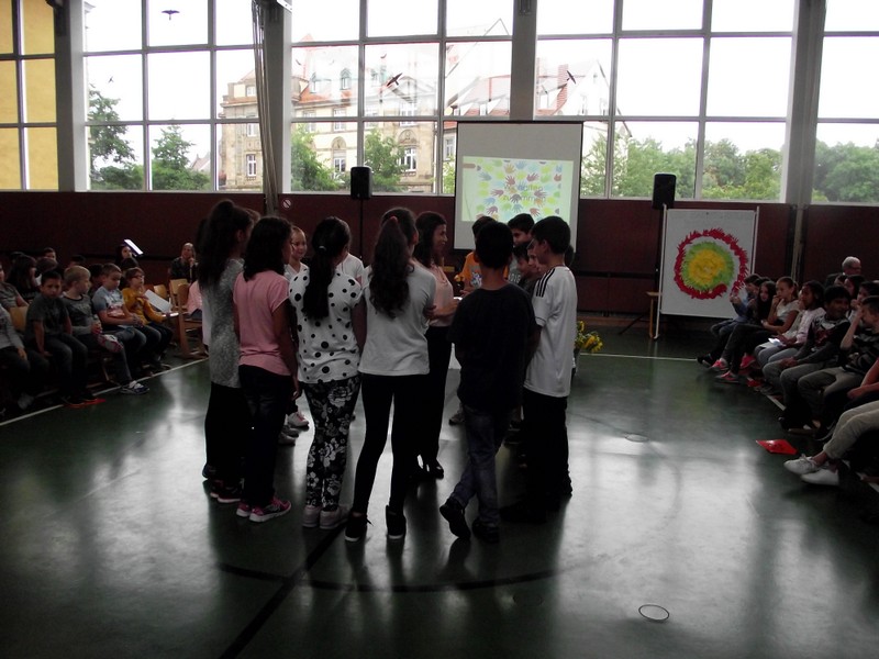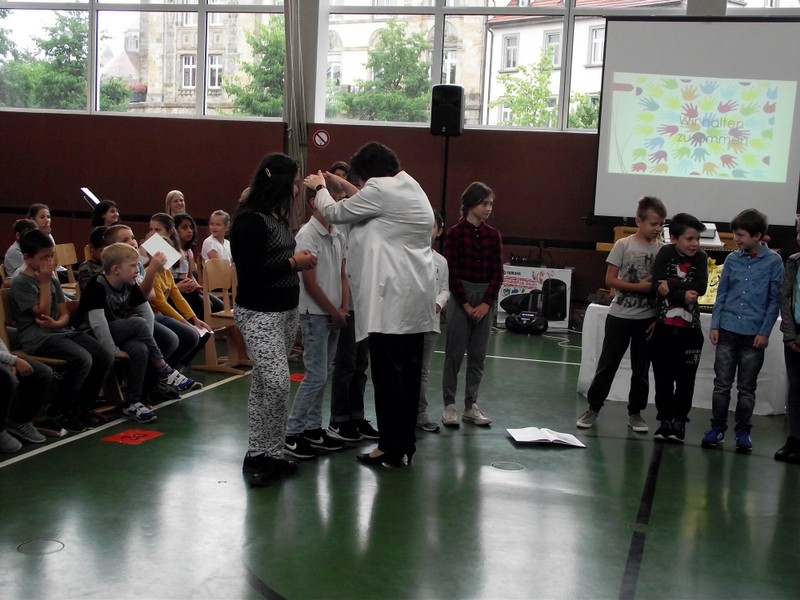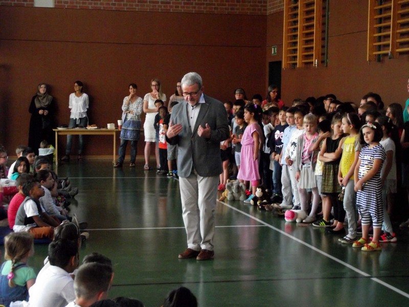 Zum Schuljahresende griff das Vorbereitungsteam das Thema "Hände" vom Beginn des Schuljahres wieder auf. Mit einer PowerPointPräsentation erzählten Kinder, was sie im vergangenen Schuljahr mit ihren Händen so alles gemacht haben. Mit dem Segen Gottes und dem Zuspruch Allahs wurden unsere Viertklässer und alle Schüler und Lehrkräfte, die die Friedrich-Rückert-Schule verlassen, verabschiedet. Lange war die "Liste des Dankes", die Schulleiter Herr Redolfi zu Schuljahresende der Schulfamilie, Freude und Förderern aussprach - ohne die viele Aktivitäten unserer Schule nicht möglich gewesen wären.