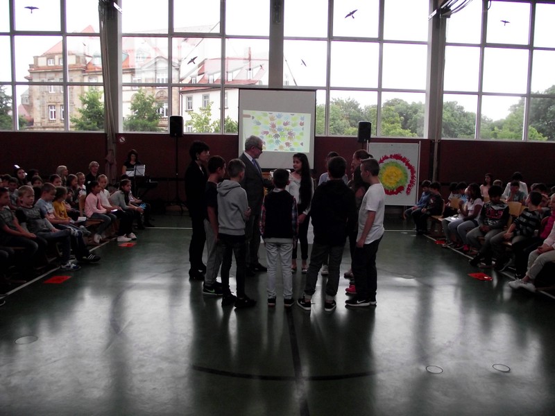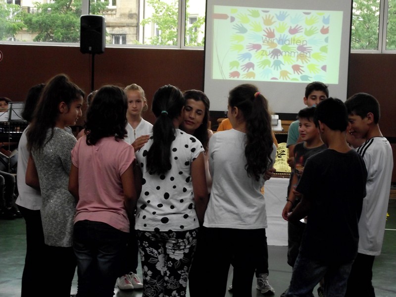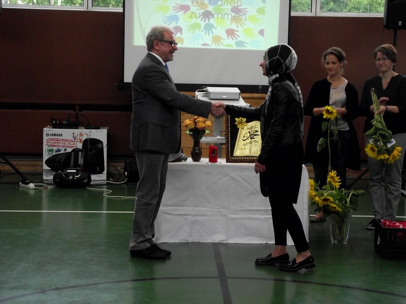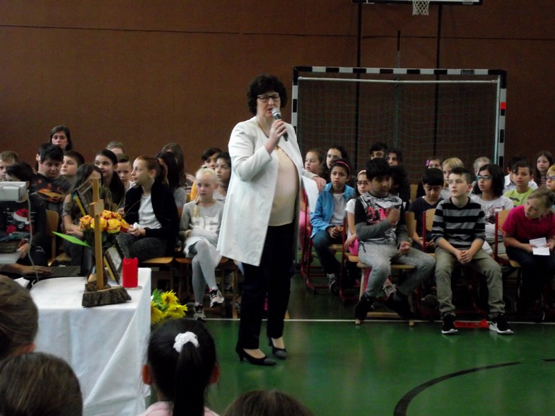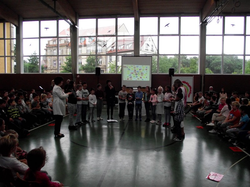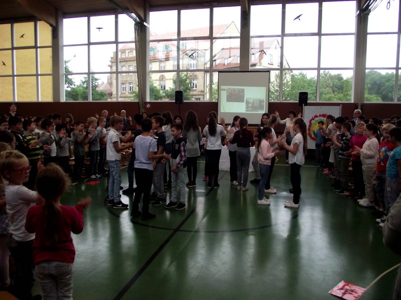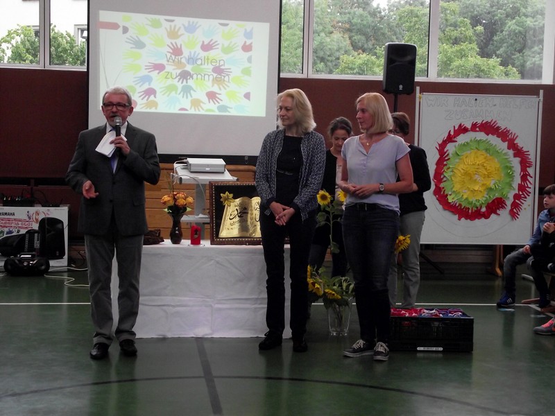 Zum Schuljahresende griff das Vorbereitungsteam das Thema "Hände" vom Beginn des Schuljahres wieder auf. Mit einer PowerPointPräsentation erzählten Kinder, was sie im vergangenen Schuljahr mit ihren Händen so alles gemacht haben. Mit dem Segen Gottes und dem Zuspruch Allahs wurden unsere Viertklässer und alle Schüler und Lehrkräfte, die die Friedrich-Rückert-Schule verlassen, verabschiedet. Lange war die "Liste des Dankes", die Schulleiter Herr Redolfi zu Schuljahresende der Schulfamilie, Freude und Förderern aussprach - ohne die viele Aktivitäten unserer Schule nicht möglich gewesen wären.