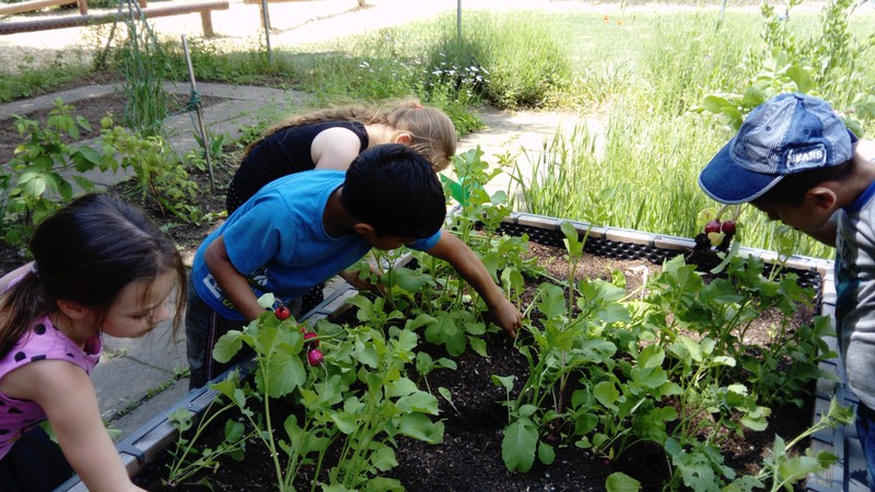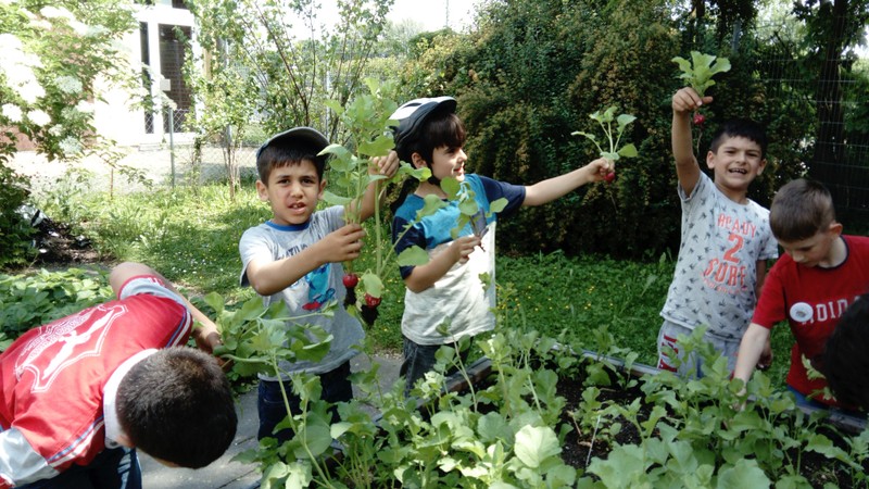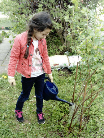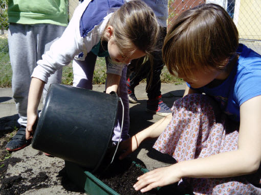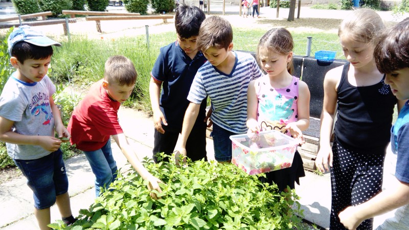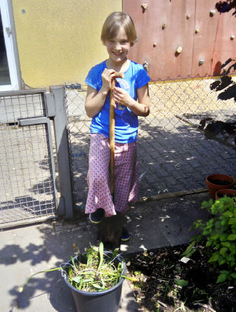 In diesem Schuljahr haben die Ganztagskinder die Möglichkeit, mit Förderlehrerin Frau Ums während der pädagogischen Pause im Schulgarten zu arbeiten. Das gemeinsame Gärtnern begann schon im Herbst: Es wurden jede Menge Blumenzwiebeln gesät, welche unseren Garten im Frühling verschönern sollten. Vor einiger Zeit begannen dann unzählige Tulpen, Narzissen und Hyazinthen aus dem Boden zu sprießen und ihre Blüten zu entfalten. Den Boden umzugraben und so für die Aussaat vorzubereiten, machte den Kindern besonders Spaß! Neben verschiedenen Getreidesorten haben wir Karotten, Radieschen und Salat gesät. Jetzt heißt es aber erst einmal abwarten, bis aus den kleinen Samen große Pflanzen werden. Bis zu den Sommerferien können dann hoffentlich auch die anderen Obst- und Gemüsesorten, wie zum Beispiel Erdbeeren, Himbeeren oder Johannisbeeren vernascht werden.