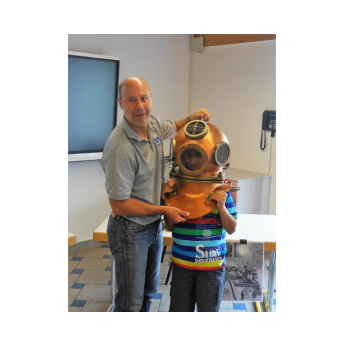 Tauchers. Sie durften sogar einen Taucherhelm aufsetzen und sich mit