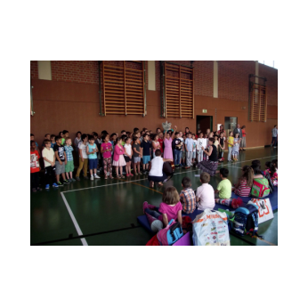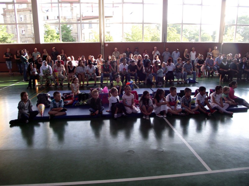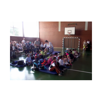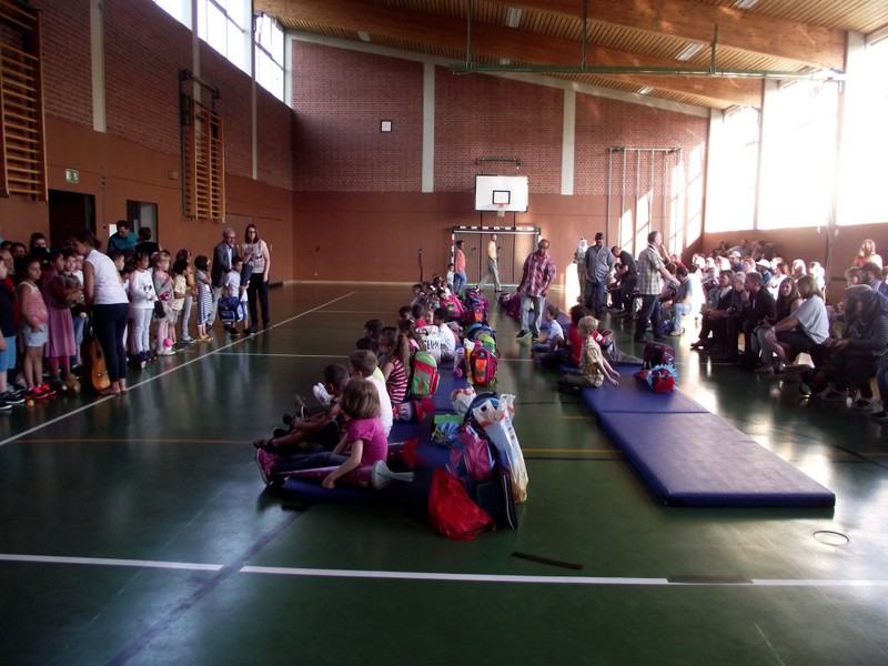 Bei hochsommerlichen Temperaturen warteten die neuen ABC-Schützen aufgeregt in der Turnhalle darauf, dass ihr erster Schultag "endlich" so richtig beginnt. Mit dem Klassiker "Alle Kinder lernen lesen" gaben dieSchulkinder der zweiten und dritten Klassen einen kleinen Einblick in das ABC. Anschließend begrüßte Schulleiter Herr Redolfi die frischgebackenen Erstklässler und ihre Familien ganz herzlich und betonte in seiner kurzen Ansprache, dass alle Kinder an unserer Schule willkommen sind - mit ihren Stärken und Schwächen - und wünschte ihnen ein erfolgreiches Schuljahr.