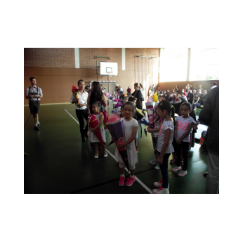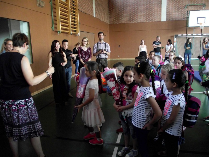 Dann war es endlich soweit: Bepackt mit Schultasche und Schultüte gingen die stolzen Erstklässler mit ihren Lehrerinnen Frau Kärpf und Frau Martin für ihre erste Unterrichtsstunde in ihre Klassenzimmer. Die Eltern erhielten von Herrn Redolfi weitere Informationen und konnten die Wartezeit bei Kaffee und Kuchen verkürzen. Ein herzliches Dankeschön an die fleißigen Helferinnen, die trotz des Feiertages sich für unsere Schulgemeinschaft engagiert haben.