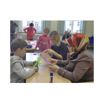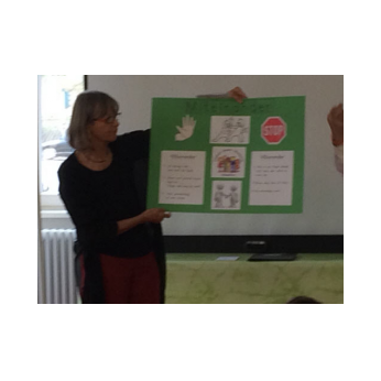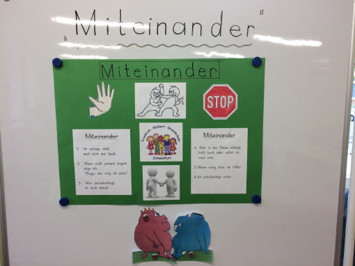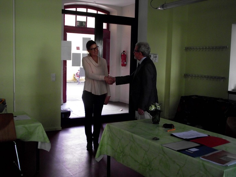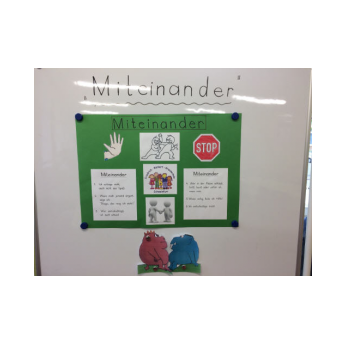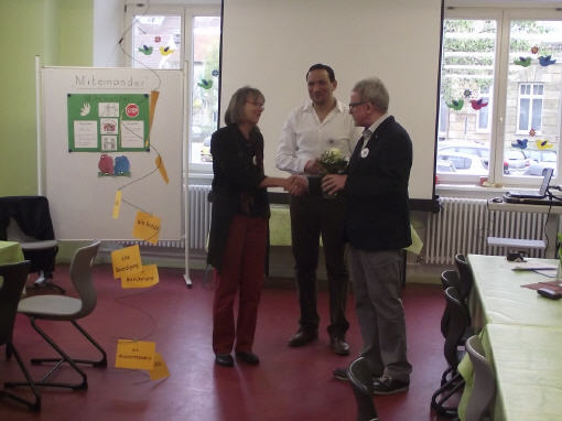 Der stetige Zuwachs vor allem an syrischen Flüchtlingsfamilien im Laufe des Schuljahrs veranlasste uns, das Elterncafé für diese Familien ein weiteres Mal anzubieten. Die Kolleginnen Frau Merkl und Frau Staffort-Hartlieb hatten das Thema „Miteinander“ gewählt, da eine Schulfamilie nur funktionieren kann, wenn alle zusammenhalten und - helfen. Schülervater und Dolmetscher Herr Melik hatte sich nicht nur um die Übersetzung der Einladungen gekümmert, sondern auch mit Frau Merkl und mehreren Kindern einen kleinen Film zum Thema „Streit“ ins Arabische übersetzt. So konnten wir den Eltern, die der Einladung zum Teil mit Kindern gefolgt waren, den Einstieg in die Thematik erleichtern. Während sich Frau Schabel und Frau Kärpf den kleineren Kindern widmeten, hörten die größeren gespannt zu und die Eltern konnten erfahren, welche Regeln des Miteinanders an der FRS gelten. Schulleiter Herr Redolfi, der anfangs die bunte Schar begrüßt hatte, schilderte auch Konsequenzen, wenn die geltenden Regeln nicht eingehalten würden. Jugendsozialarbeiterin Frau Hofmann erklärte dabei, welche Rolle das soziale Lernen bei ihrer Tätigkeit an der Schule spiele. Im Anschluss konnten wir im Gespräch mit den Familien u.a. erfahren, wie sie zu Hause mit streitenden Kindern umgehen. Der Elternbeirat rundete mit Kaffee, Tee und Kuchen den Nachmittag ab. Unser herzlicher Dank gilt allen, die mit ihrem Engagement zum Gelingen dieses Nachmittags beigetragen hatten. Als symbolisches Dankeschön bekam Herr Melik einen Kinogutschein überreicht. Für die äußerst zeitaufwändige und gut gelungene Gestaltung des Films Streit dankte Herr Redolfi vor allem Frau Merkl. Einen besonderen Dank sprach der Schulleiter auch Frau Staffort-Hartlieb für Ihr herausragendes Engagement bei der Vorbereitung und Durchführung aller Pädagogischen Elterncafés für syrische Eltern aus.