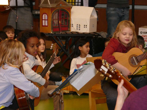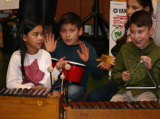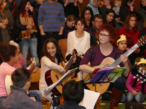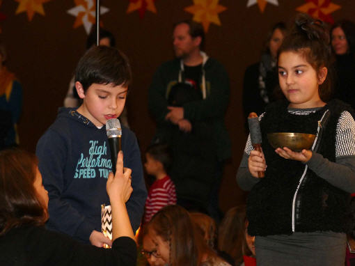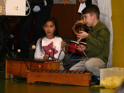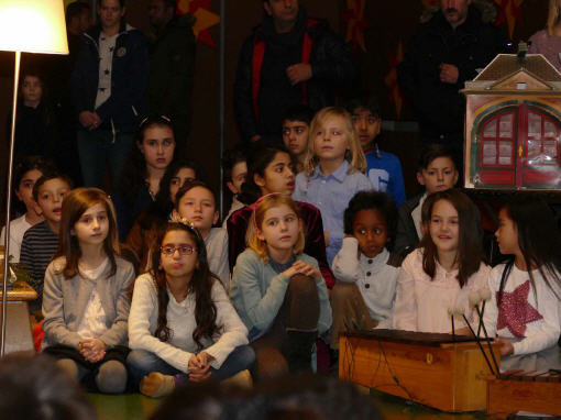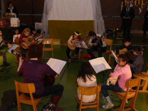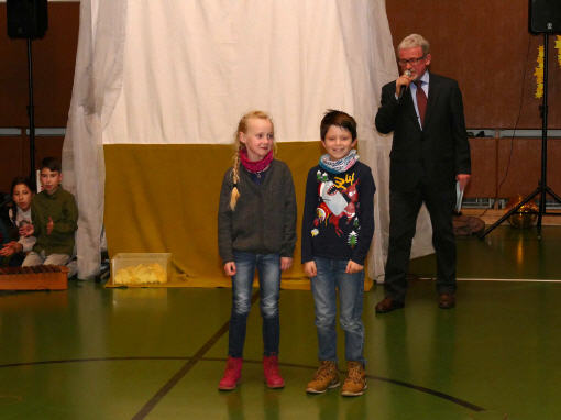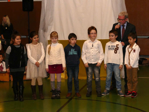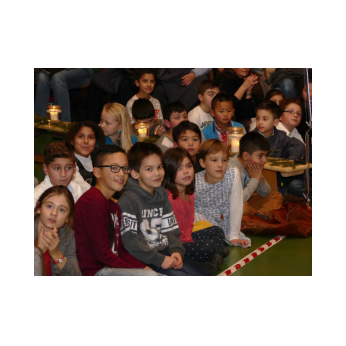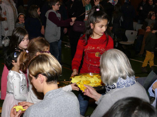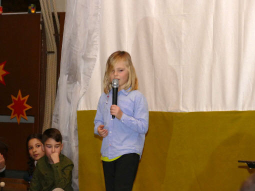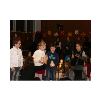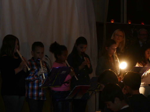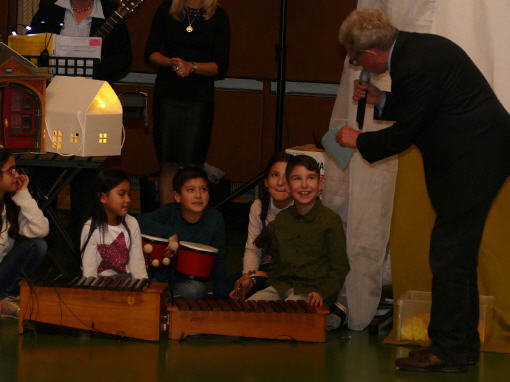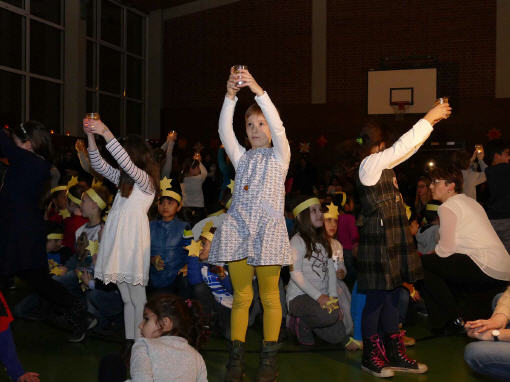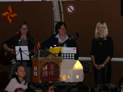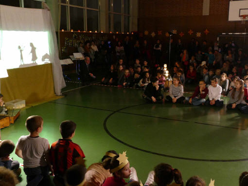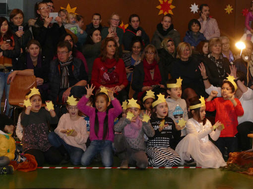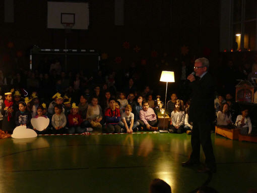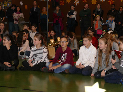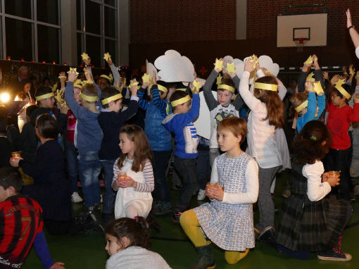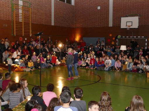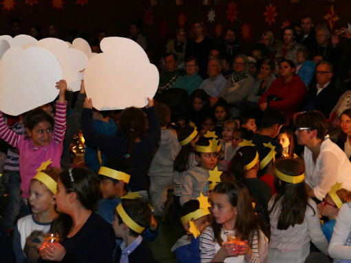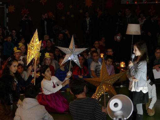 Traditionell eröffneten die Gitarrenkindern mit Frau Zambrano die adventliche Feier der Friedrich-Rückertschule. Schulleiter Herr Redolfi begrüßte Kinder, Eltern, Lehrer, Ehemalige, Freunde und Förderer unserer Schule. Im Mittelpunkt der diesjährigen Weihnachtsfeier stand das Märchen von Sterntalerchen, das von der Klasse 3a mit ihrer Lehrerin Frau Wehr aufwendig als Schattenspiel in Szene gesetzt wurde. Die Textrollen sprachen Kindern aus der Klasse 4a. Kinder aus der Klasse 2a machten sich Gedanken, wo wir "Sternenlicht" für andere sein können. Das Thema "Sterne" zog sich wie ein roter Faden durch die Feier. So wurde der Sternentanz (1b, 1a und 2b) von Flötenkindern aus der Klasse 4b begleitet. Das Gedicht "Markt und Straßen sind verlassen" von Joseph Eichendorff stellten die Kinder der Klasse 3b mit ihrer Lehrerin Frau Slesinski anschaulich als Theaterstück dar. Als "Mitgebsel" verteilten am Ende Schüler an Eltern und Gäste selbstgebastelte Sterne. Musikalisch begleitete das "Lehrerorchester" die Feier. Für das leibliche Wohl sorgte wie jedes Jahr der Elternbeirat mit Kuchen und Punsch. Dafür ein ein herzliches Dankeschön!