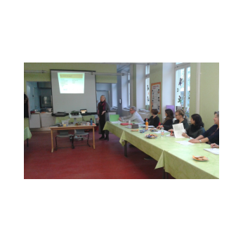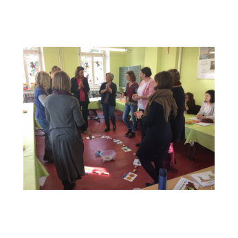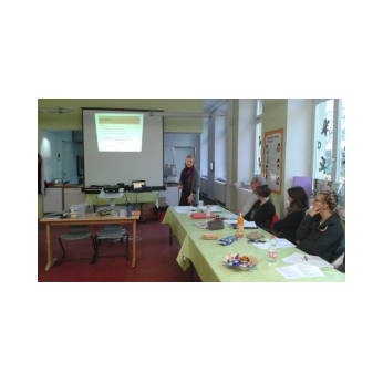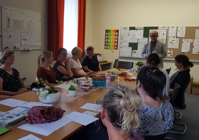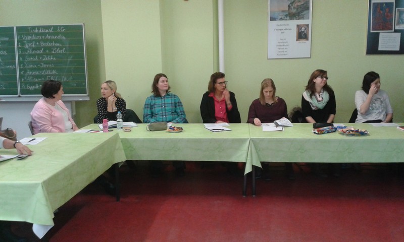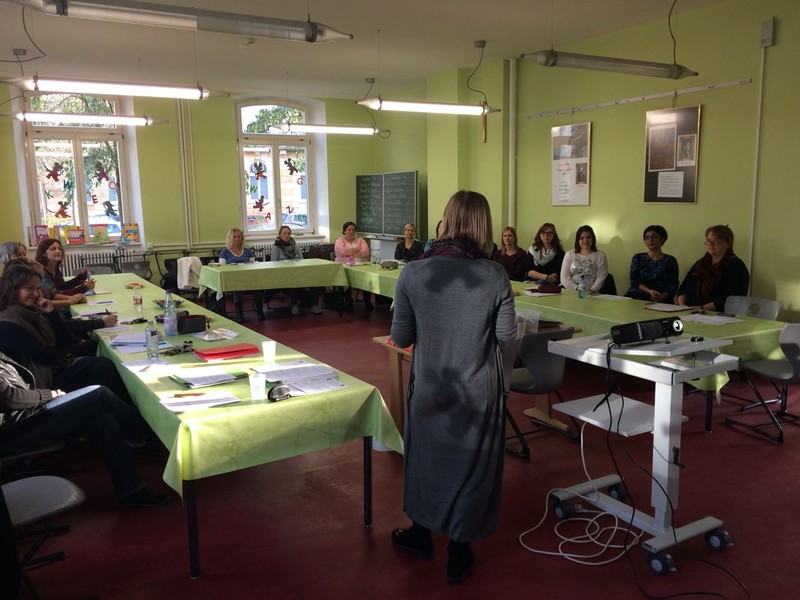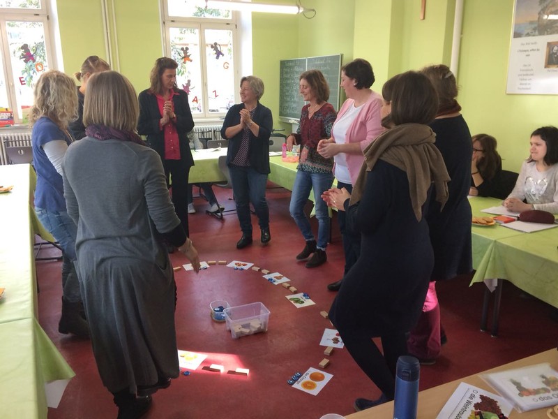 Am Buß- und Bettag traf sich das Lehrerkollegium der Friedrich-Rückert-Grundschule, um sich zum Themenbereich „Deutsch als Zweitsprache“ fortzubilden. Als Referentin begrüßte Schulleiter Herr Redolfi die Migrationsbeauftragte Frau Konrektorin Kitz. In ihrem kurzweiligen Referat informierte sie unter anderem über Prinzipen der Didaktik des Zweitspracherwerbs, stellte Unterrichtsmaterialien vor und ging auf rechtliche Bestimmungen ein. Zahlreiche praktische Beispiele veranschaulichten ihre Ausführungen.