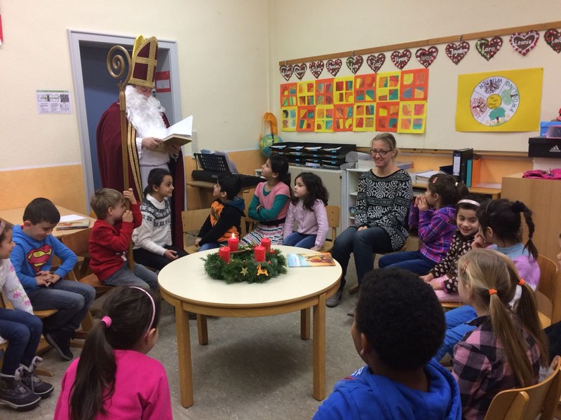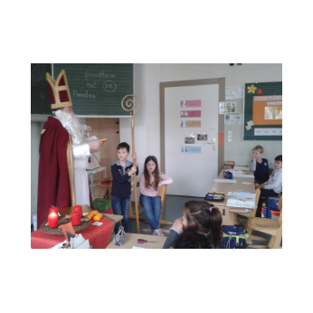 Wie jedes Jahr kam der Nikolaus zu uns an die Friedrich-Rückert-Schule. Bei seinen Besuchen in jeder Klasse las er natürlich auch aus seinem goldenen Buch vor, was den Kindern besonders gut gelingt und wo sie bis zum nächsten Jahr noch etwas verbessern können. Selbstverständlich hatten die Klassen auch etwas für den Nikolaus vorbereitet: ein Nikolauslied oder ein kleines Gedicht. Bevor der Nikolaus zur nächsten Klasse weiterzog, ließ er für die Kinder einen großen Sack mit kleinen Geschenken da. Ein herzliches Dankeschön an den Nikolaus und seine fleißigen Helfer des Elternbeirats, die ihm wie immer beim Packen der Nikolaussäcke geholfen haben.