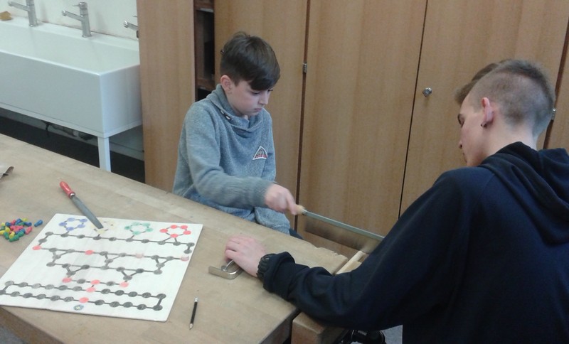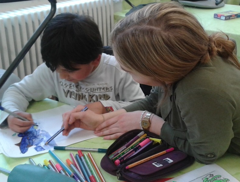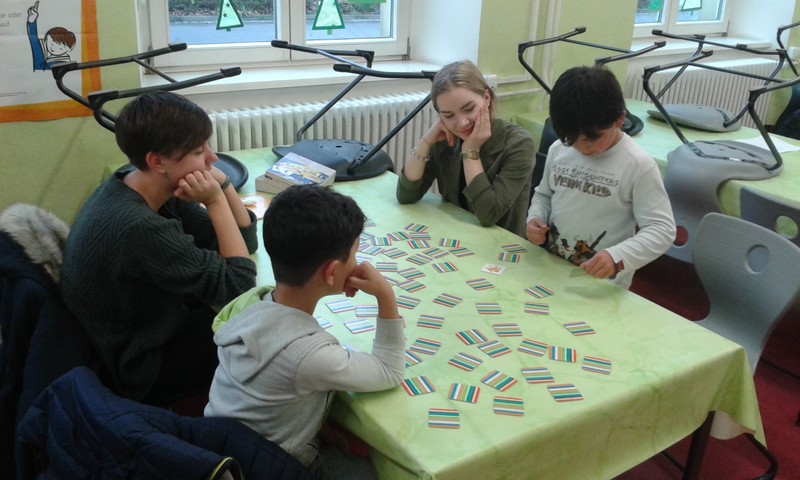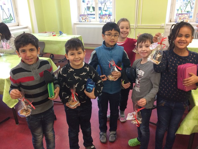 Diese Frage ist seit Oktober 2017 besonders häufig donnerstags zu hören. Nach dem Mittagessen stehen Kinder am Rande des Schulhofes und halten Ausschau nach ihren großen Teampartnern. Die sehnsüchtig erwarteten sind neun Schülerinnen und ein Schüler der elften Klasse des Celtis-Gymnasiums. Im Rahmen ihres sogenannten P-Seminars haben sie sich entschieden, ein Schuljahr lang im Projekt „Kind = Kind“ mitzuarbeiten. Bei diesem vom Kinderschutzbund Schweinfurt initiierten Projekt schenken Jugendliche einmal pro Woche einem Grundschulkind eine Stunde „Zeit“. Dieses „Zeitgeschenk“ kann ganz unterschiedlich aussehen - ganz auf die Bedürfnisse und Interessen des Grundschulkindes abgestimmt. Das eine Team bastelt oder malt zusammen oder spielt Memory, das andere sägt und bemalt ein eigenes Brettspiel - und ganz nebenbei werden die Deutschkenntnisse verbessert. Am letzten Donnerstag vor den Weihnachtsferien trafen sich alle Teams im Speisesaal zur gemeinsamen Weihnachtsfeier - eine Idee der hoch engagierten Jugendlichen. Die „Kleinen“ hatten für ihre „Großen“ Plätzchen gebacken und verziert, und auch die Großen hatten kleine Geschenke dabei. Bei Saft und Plätzchen konnte man sehen, wie gut die Teams in der kurzen Zeit schon zusammengewachsen sind.