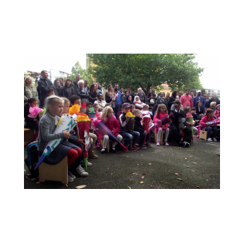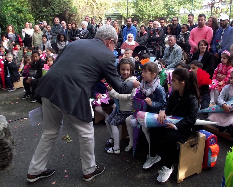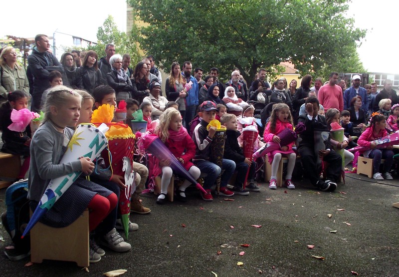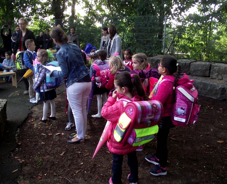 In diesem Jahr begrüßte Schulleiter Leo Redolfi die neuen Erstklässler in ungewohnter Umgebung. Da gerade die Turnhalle saniert wird, trafen sich Kinder, Eltern und Lehrkräfte unter freiem Himmel im Pausehof. Die beiden zweiten Klassen sangen und trommelten für die frischgebackenen Erstkläßler den Klassiker "Alle Kinder lernen lesen". Anschließend gingen die Schulanfänger mit ihren Lehrerinnen für ihre erste Unterrichtsstunde in ihre Klassenimmer, während Herr Redolfi die Eltern mit wichtigen Informationen und der Elternbeirat mit Kaffee und Kuchen versorgte. Den fleißigen Helfern ein herzliches Dankeschön!