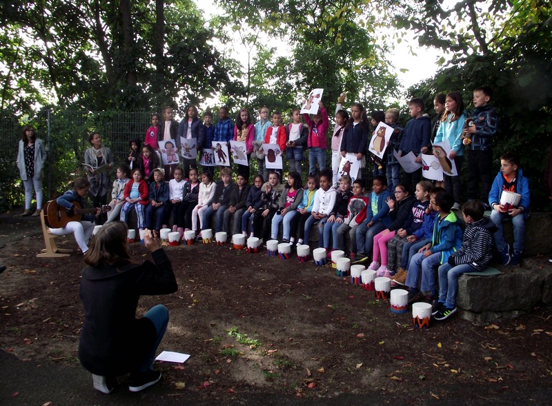 erleuchtet. Dazu sangen die Kinder, musikalisch begleitet von drei Kolleginnen,