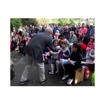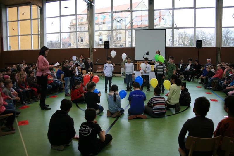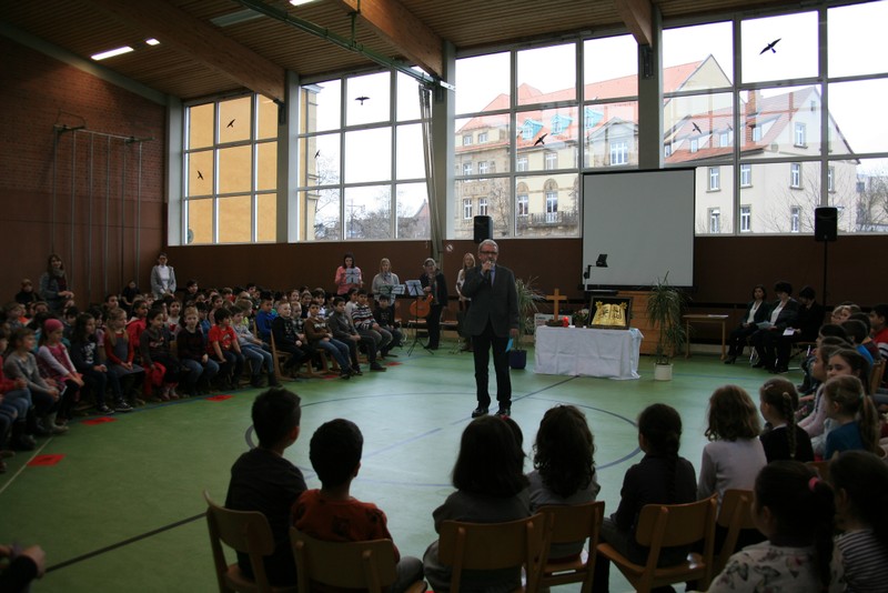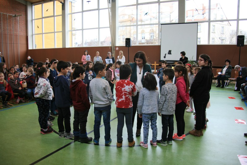 Unsere multireligiösen Schulfeiern zu Beginn und am Ende des Schuljahres begehen wir nun bereits seit 10 Jahren auf diese Weise. Der Inhalt und die Organisation der Feiern wurden von den Religionspädagoginnen Frau Michaela Gobs-Knoche und Frau Sylvia Kneuer sowie Frau Zeynep Cetinkaya von Jahr zu Jahr verbessert. Mittlerweile sind sie zur Tradition geworden. Schulleiter Herr Günther Leo Redolfi dankte insbesondere den verantwortlichen Religionspädagoginnen für die Vorbereitung und Durchführung der Feiern. Seinen Dank sprach er auch allen Lehrkräften aus, die jährlich zum Gelingen der Feiern beitragen (instrumentelle Begleitung unter Leitung von Frau Angelika Freunek…). Einen extra Applaus bekamen alle Kinder, besonders auch die Jungen und Mädchen der Klasse 3c mit ihrer Lehrerin Frau Julia Martin-Schäfer für ihr aktives und sehr gelungenes Mitwirken bei der Gestaltung der Feier.