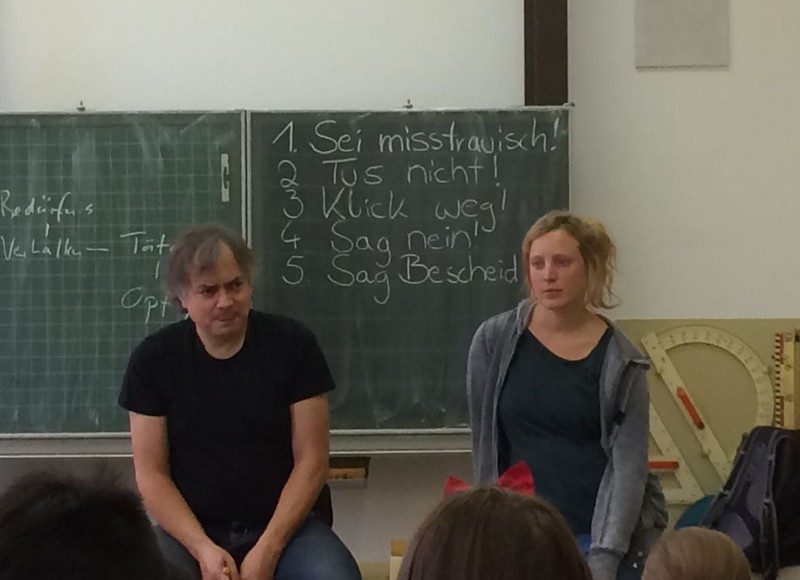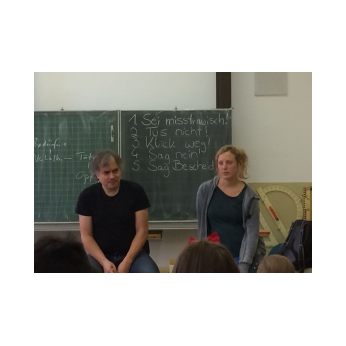 Ein weiteres Mal war der Bamberger Theaterpädagoge Dirk Bayer mit einem interaktiven Lehrstück bei uns an der Schule. Mit Krasses Zeug legte er seinen Schwerpunkt in diesem Schuljahr auf Medienwelten und deren Nutzung. Egal ob im Fernsehen, am Tablet, in Videos, auf dem Handy oder in sozialen Netzwerken, bereits Kinder werden mit einer Menge krassem Zeug konfrontiert. Ziel der beiden Aufführungen für unsere Klassen der 3. und 4. Jahrgangsstufe war es, ihre Medienkompetenz zu fördern und Möglichkeiten anzubieten, ihr eigenes Medienverhalten kritisch zu hinterfragen sowie gemeinsam adäquate Handlungsstrategien zu entwickeln für einen positiven Umgang mit Medien und aktuellen Gefährdungsfeldern. Einige Ratschläge wurden besonders hervorgehoben: Sei misstrauisch! Tu´s nicht, klick weg, sag nein! Sag Bescheid!