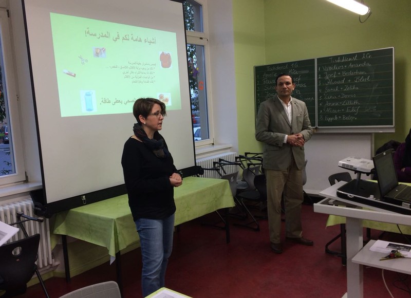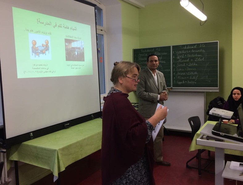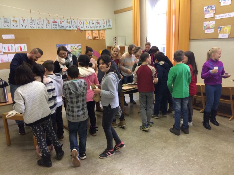 Auch in diesem Schuljahr luden wir wieder alle syrischen Eltern, deren Kinder erst vor kurzem an unsere Schule gekommen sind oder als Vorschulkinder den Deutsch-Vorkurs besuchen, zu einem Elternnachmittag ein. Unser Ziel war es, sich gegenseitig persönlich noch besser kennenzulernen und den zahlreich erschienen Eltern eine Vorstellung davon zu vermitteln, was uns aus pädagogischer Sicht wichtig ist und wie ein Schultag abläuft. Die grundlegenden Informationen wurden in einer Präsentation mit Bildern und Zeichnungen veranschaulicht. Gleichzeitig wurden sie von Schulleiter Herrn Redolfi, Stellvertreterin Frau Kärpf und Klassenleiterin Frau Merkl erläutert und sofort von Herrn Melik ins Arabische übersetzt. Nach der Präsentation fanden noch viele kleine Gespräche zwischen Eltern und Lehrkräften statt. Frau Schabel, unsere Mitarbeiterin für den Bereich Deutsch als Zweitsprache, brachte sich wieder sehr engagiert in die Betreuung der Kleinsten ein. Für das leibliche Wohl sorgte in bewährter Weise unser Elternbeirat, vertreten durch Frau Akdemir und Frau Bieler. Ein herzliches Dankeschön allen, die diesen Nachmittag für unsere syrischen Eltern ermöglicht haben.