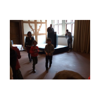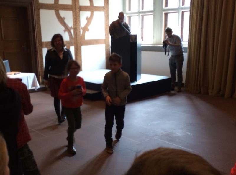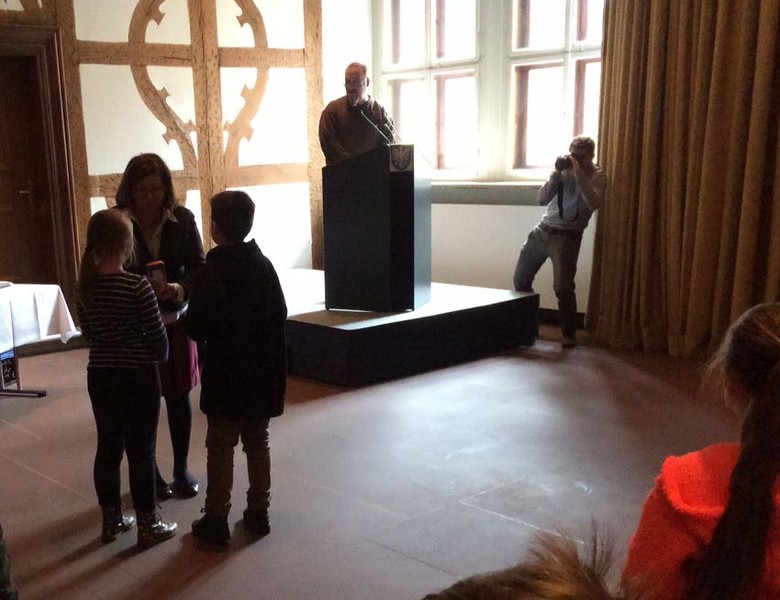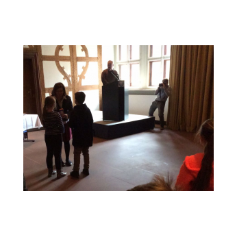 Als erste Schulklasse der Stadt durfte die Klasse 4b Anfang Juni eine Projektion über den Namensgeber unserer Schule besuchen. Herr Padoan von der Rückert-Gesellschaft hat mit einem Handy-Beamer eine Büste von Friedrich Rückert zum Leben erweckt und so konnte uns der berühmte Dichter selbst etwas über sein Leben und Werk erzählen. Dazu waren wir im Rückertbau und im Leopoldinasaal der Stadt Schweinfurt. Die Präsentation hat uns sehr beeindruckt! Danach hat Herr Dr. Kreutner, der schon seit 33 Jahren über Friedrich Rückert forscht, noch unsere Fragen beantwortet. Wir haben gestaunt, was der Dichter alles geschrieben und übersetzt hat.