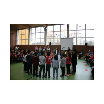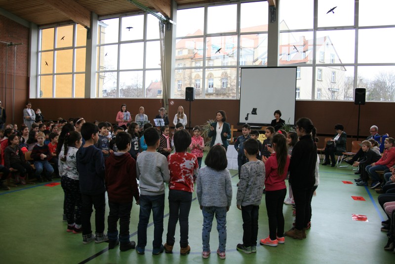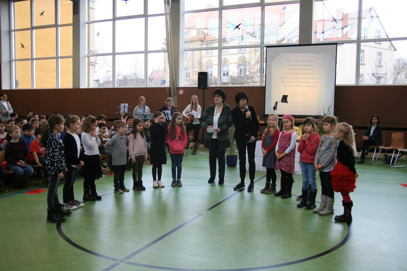 Am 14.03.2018 holten wir unsere Schulanfangsfeier, welche wegen der Sanierungs-arbeiten in der Sporthalle bis jetzt noch nicht stattfinden konnte, mit besonderer Würdigung unserer Erstklasskinder nach. Außerdem feierten wir das 10-jährige Jubiläum unserer multireligiösen Schulfeiern. Sie finden seit 2007 jeweils zum Beginn und am Ende des Schuljahres statt. Gleichzeitig wurde die sanierte Sporthalle nach einem halben Jahr wieder zur Nutzung an die Schule übergeben. Aus diesem Grund nahm auch die zweite Bürgermeisterin der Stadt Schweinfurt, Frau Sorya Lippert und der Referent für Soziales, Jugend, Sport und Schulen, Herr Jürgen Montag an unserer Schulfeier teil. Darüber hinaus diente die Feier auch als Auftaktveranstaltung für verschiedene Aktionen im Rahmen der BLLV-Aktion Haltung zählt. Das Manifest mit den Zielstellungen Demokratie leben, respektvoller Umgang miteinander, Toleranz, Werteerziehung… wurde u.a. von Herrn Oberbürgermeister Sebastian Remelé unterzeichnet. Unsere multireligiöse Feier hat positive Aufmerksamkeit erregt und dient als gutes Beispiel für das Manifest Haltung zählt. Deswegen waren auch die Schulleiter Herr Walter Schäffer (Grund- und Mittelschule Dittelbrunn) und Herr Tomi Neckov (Friedenschule Schweinfurt) der Einladung zu unserer Feier gefolgt. Sie und alle Unterstützer der Aktion Haltung zählt möchten, dass an allen Schulen Fairness und Teamgeist herrschen und Kinder und Erwachsene einander mit Wertschätzung und gegenseitigem Respekt begegnen. Diese Ziele werden durch unsere Schulfeier verkörpert. Natürlich verfolgen die Schulleiter auch an ihren Schulen in Dittelbrunn und an der Friedenschule in Schweinfurt diese Ziele. Nicht nur das reine Lernwissen zählt, sehr wichtig ist uns auch, dass Jungen und Mädchen gute Klassengemeinschaften bilden und sich eben nicht gegenseitig mit Worten verletzen oder immer wieder streiten. Schulen sollen im Gegenteil ein Ort des friedlichen Miteinanders sein. Alle Kinder unserer Schule werden möglichst aktiv in den Schulalltag miteinbezogen.