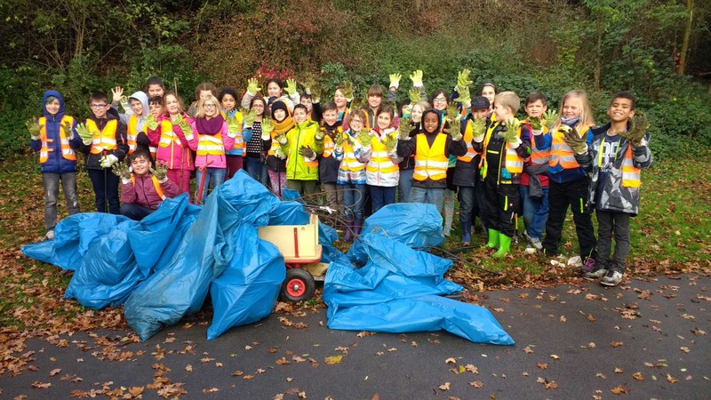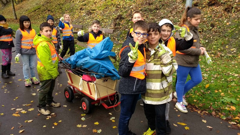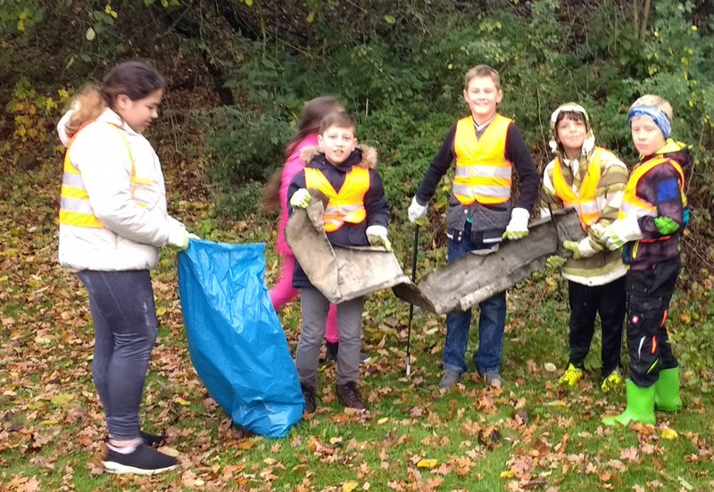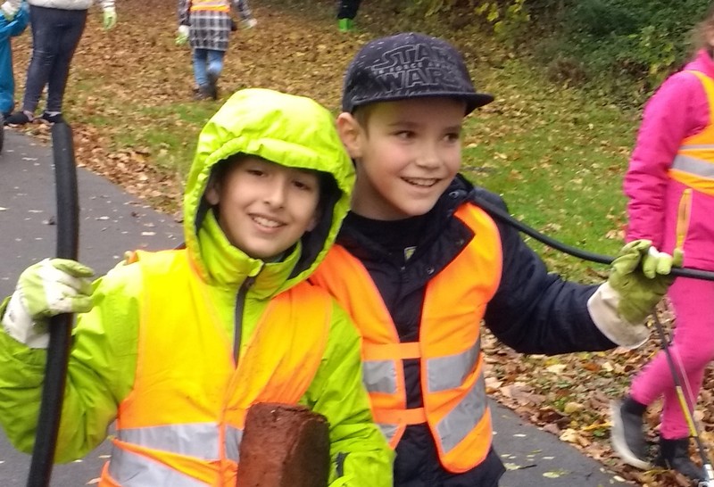 Kurz vor den Herbstferien beteiligten sich die Klassen 4a und 4b an der Müllsammelaktion der Stadt Schweinfurt. Gut ausgerüstet mit Handschuhen und Müllzwickern zogen die Kinder mit ihren Klassenleiterinnen Frau Kemper und Frau Wehr hochmotiviert los, um das einzusammeln, was andere Leute gedankenlos in die Natur geworfen haben. Entlang des Mains und im dichten Gebüsch des Bahndamms kam eine ganze Menge zusammen. Der rücksichtslose Umgang mit unserer Umwelt, vor allem die große Menge an Metallschrott löste bei Kindern und Lehrerinnen großen Unmut aus. Kinder und Lehrerinnen hätten nicht erwartet, in so kurzer Zeit so viel Müll zu finden. Alle Jungen und Mädchen waren stolz auf ihren Einsatz und nahmen sich vor, keinen Müll in der Natur zurückzulassen.