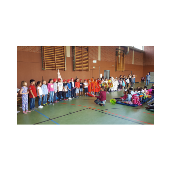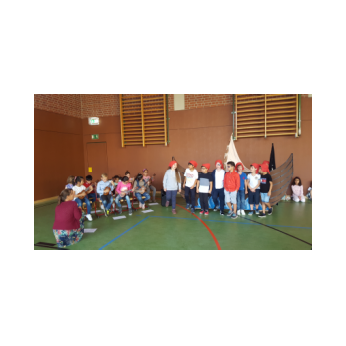 Bei hochsommerlichen Temperaturen warteten die neuen ABC-Schützen aufgeregt in der Turnhalle darauf, dass ihr erster Schultag "endlich" so richtig beginnt. Mit dem Klassiker "Alle Kinder lernen lesen" gaben die Schulkinder der Klassen 2a und 2b einen kleinen Einblick in das ABC. Danach zeigten die Kinder der Ganztagsklassen 2c und 3b in einem kleinen Anspiel, wie hilfreich es für die Piraten ist, jemanden zu treffen, der lesen kann. Dann klappt es auch mit der Schatzsuche! Anschließend begrüßte Schulleiter Herr Redolfi die frischgebackenen Erstklässler und ihre Familien ganz herzlich und betonte in seiner kurzen Ansprache, dass alle Kinder an unserer Schule willkommen sind - mit ihren Stärken und Schwächen - und wünschte ihnen ein erfolgreiches Schuljahr. Nach einem Gruppenfoto ging's dann endlich zur ersten Schulstunde in die Klassenzimmer!
