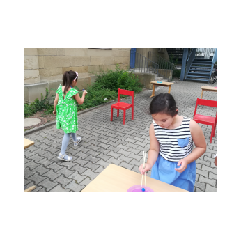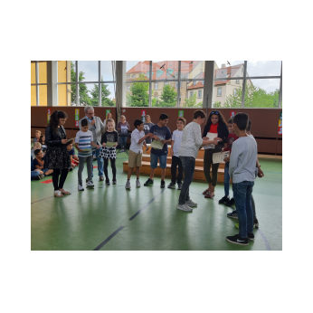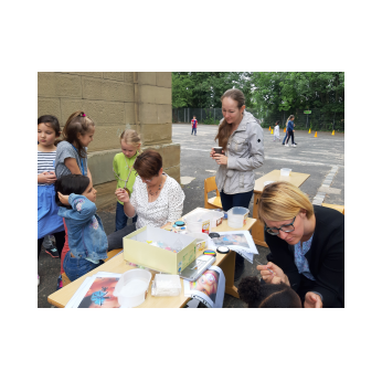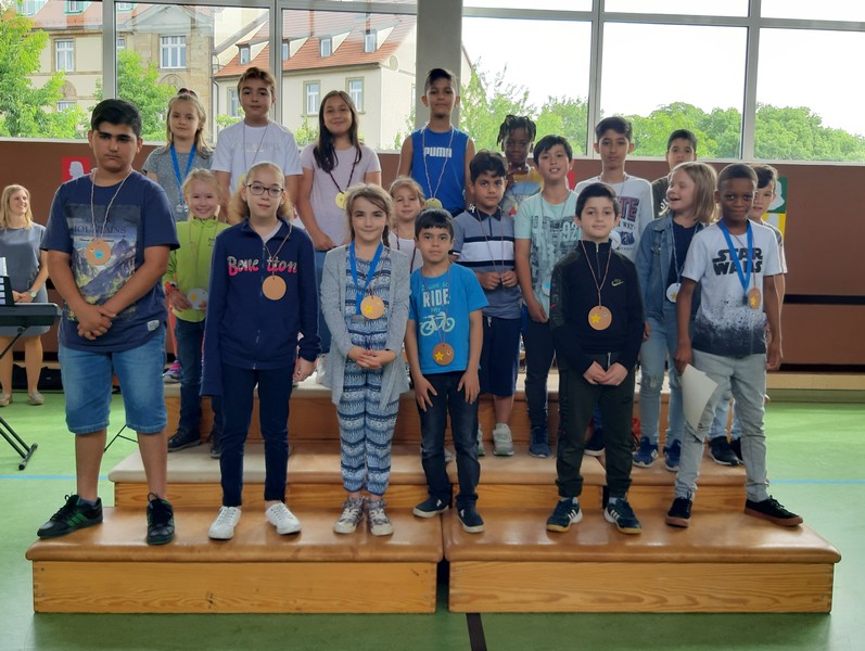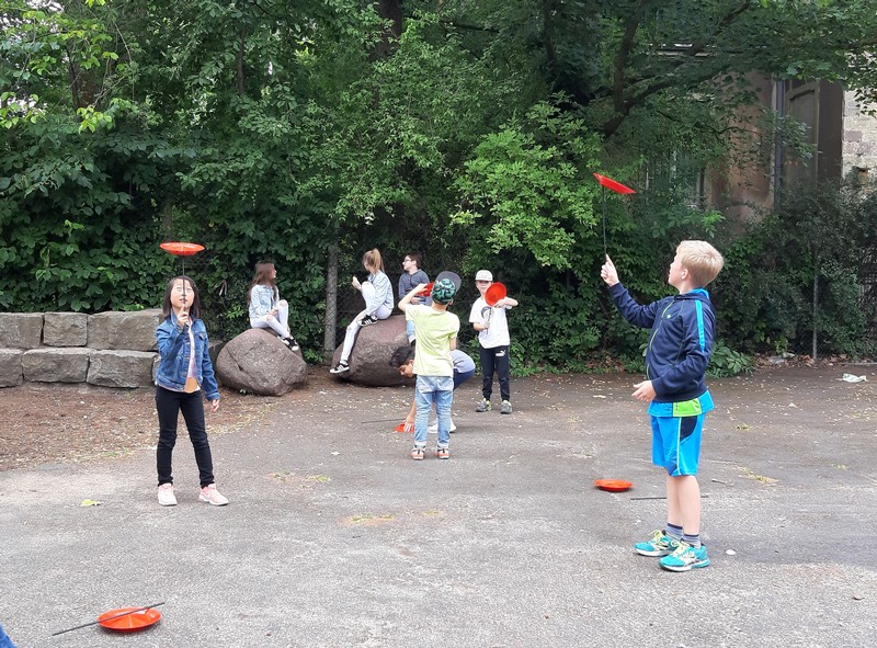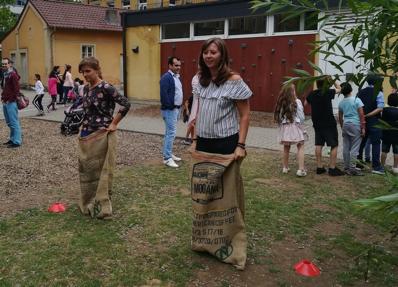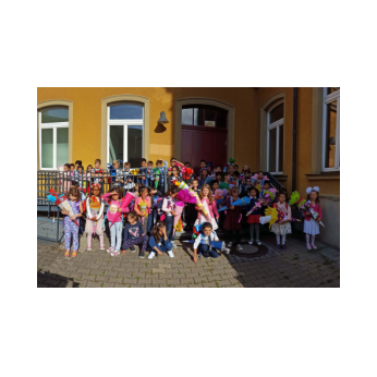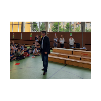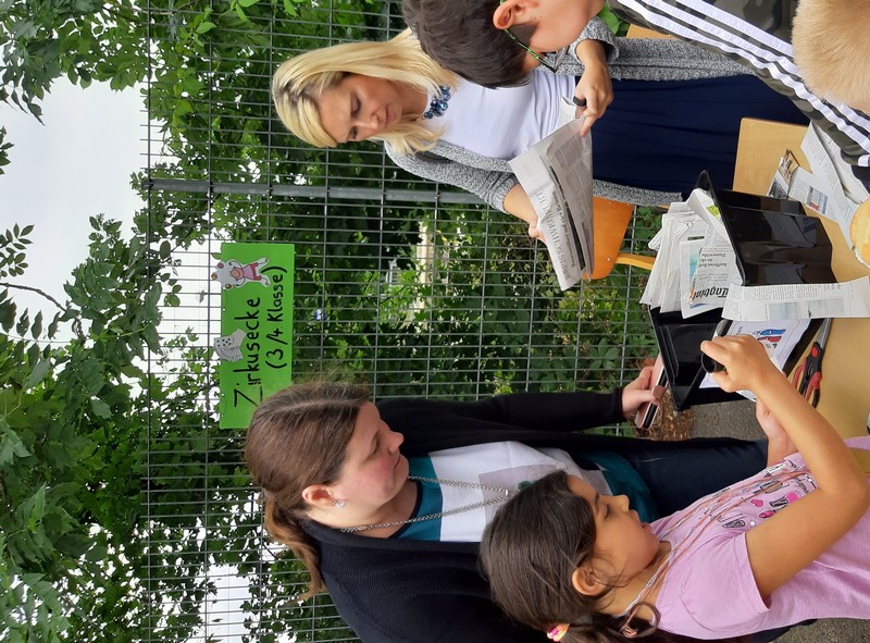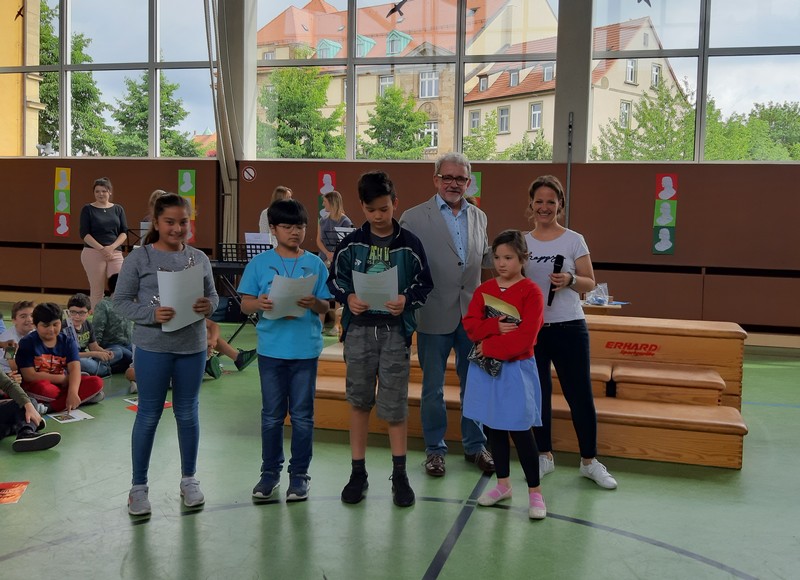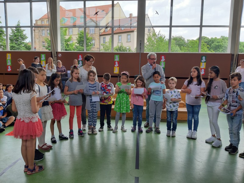 Auch wenn das Wetter nicht ganz so sommerlich war, versammelten sich Schüler und Schülerinnen, Eltern und Verwandte, Lehrkräfte, Freunde und Förderer zunächst in der Turnhalle. Nach der Begrüßung der Kinder und Eltern wurden von Schulleiter Herrn Redolfi und Konrektorin Frau Kärpf viele Kinder für ihre herausragenden sportlichen Leistungen mit Medaillen in Gold, Silber und Bronze geehrt, welche unter Anleitung der Fachlehrerinnen gebastelt worden waren. Danach standen für Klein und Groß zahlreiche Stationen im Schulhaus und im Pausenhof bereit: Neben den Klassikern, z.B. Sackhüpfen und Schminken, luden eine Bau- und eine Zirkusecke zum Spielen und Ausprobieren ein, Lavendelsäckchen konnten gebastelt werden und noch vieles mehr. Für den großen und kleinen Hunger bot der Elternbeirat in bewährter Weise internationale Spezialitäten an. Ein herzliches Dankeschön geht auch an die Vertreter der Stadt Schweinfurt und des Staatlichen Schulamtes, die trotz voller Terminkalender (und regnerischen Wetters) unserer Einladung gefolgt waren: Herr Oberbürgermeister Remelé, Frau Bürgermeisterin Lippert, Herr Schulrat Deublein sowie Herr Schulamtsdirektor a.D. Eusemann.