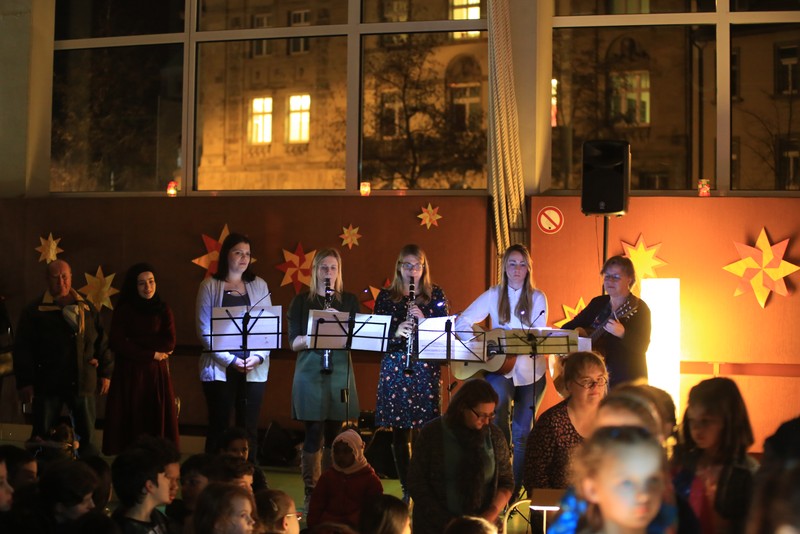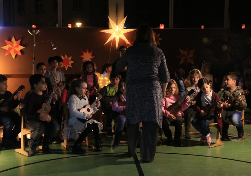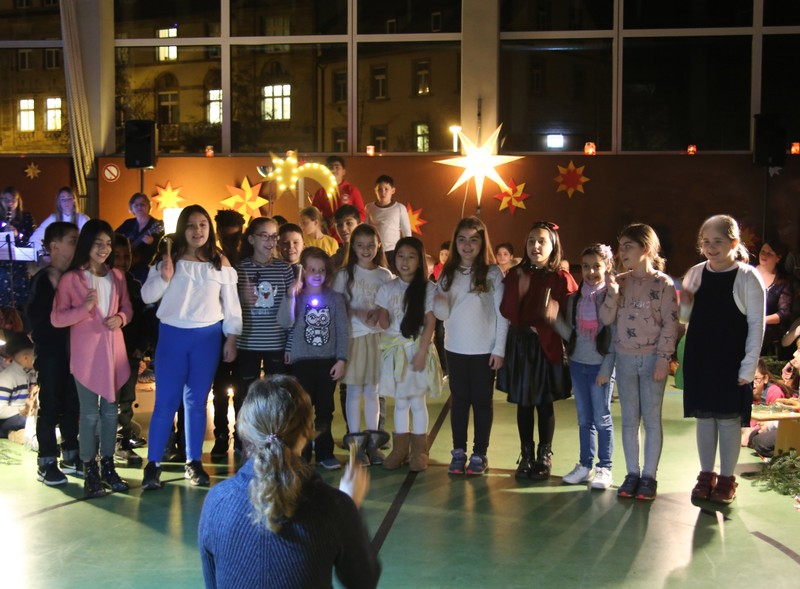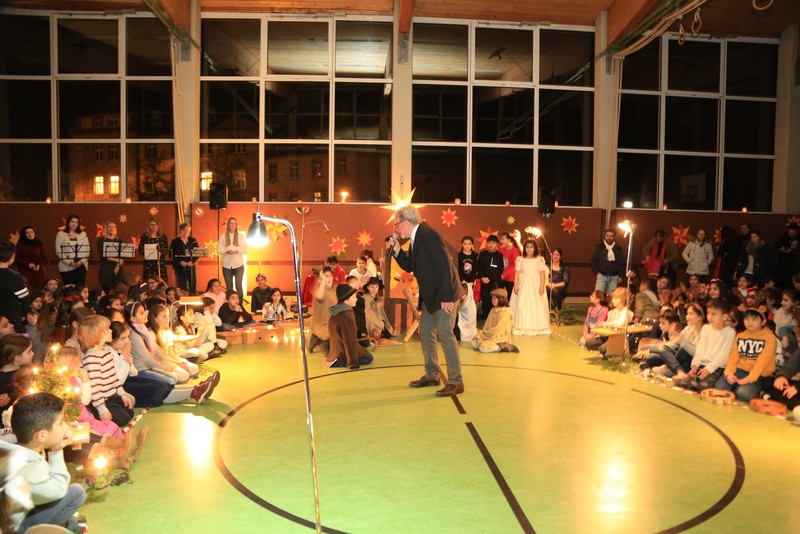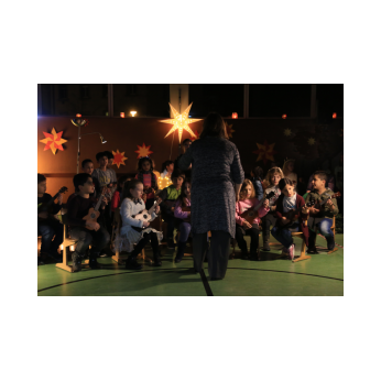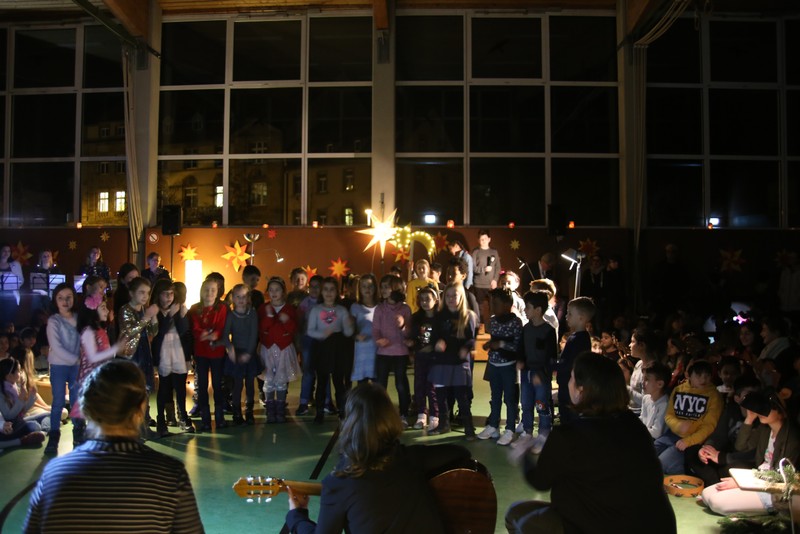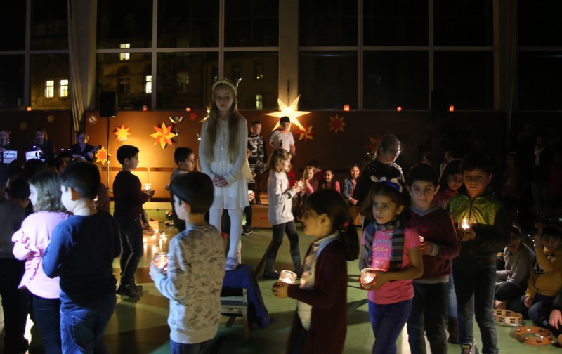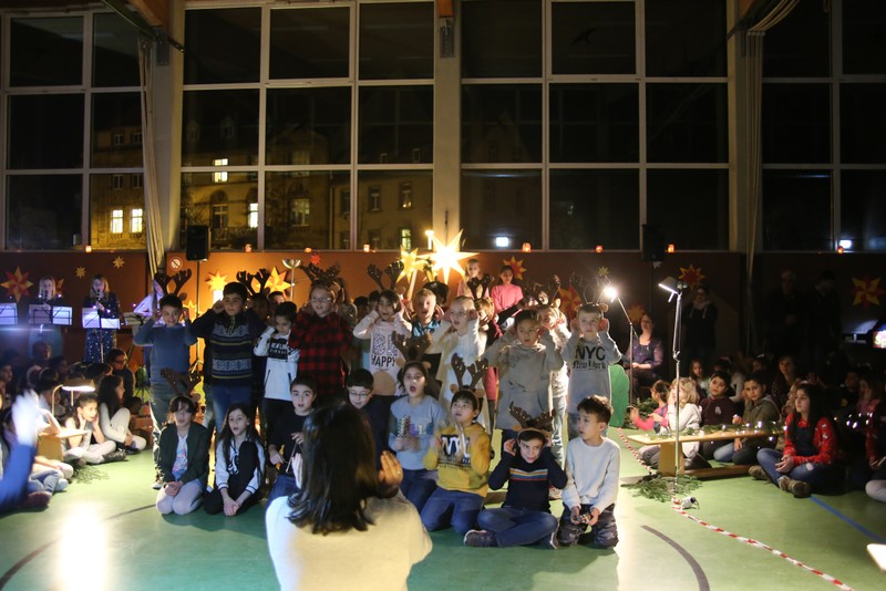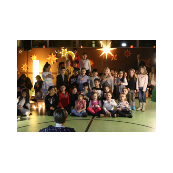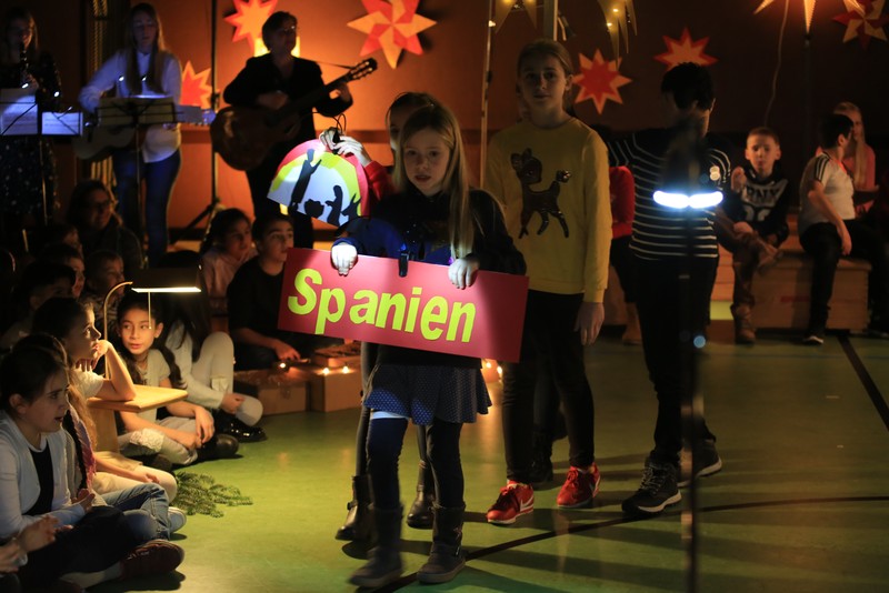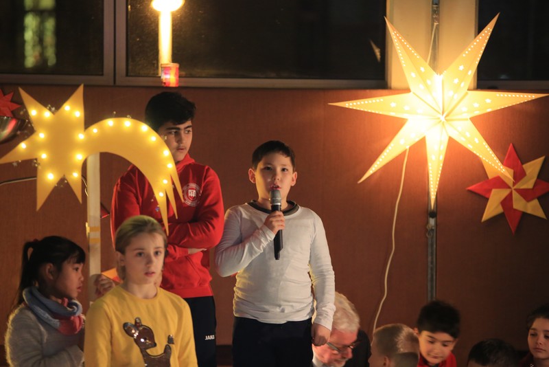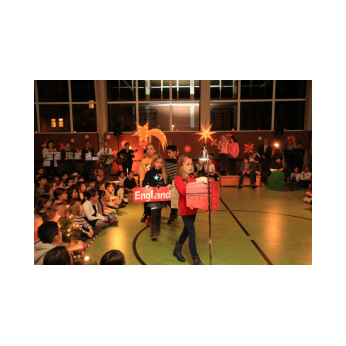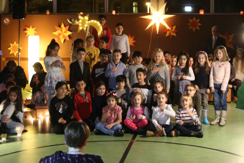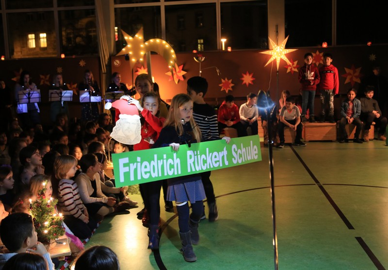 In der Adventszeit wurde viel vorbereitet, geübt und geprobt: Dann endlich war es soweit! Nachdem die Ukulelenkinder unter der Leitung von Frau Thiergärtner mit ihrem Winterlied für die passenden Einstimmung gesorgt hatten, begrüßte Schulleiter Günther Leo Redolfi die zahlreichen Gäste in der stimmungsvoll geschmückten Turnhalle zur traditionellen Adventsfeier. In diesem Jahr machte sich ein kleiner Stern auf eine große Reise durch Europa! Er wollte wissen, wie in den verschiedenen Ländern Weihnachten gefeiert wird. Von Deutschland aus führte ihn sein Weg weit in den Norden nach Schweden, über England in den warmen Süden nach Spanien und zurück an die Friedrich -Rückert-Schule. Dabei durfte das Sternchen - natürlich zusammen mit allen Gästen - erleben, wie bunt und unterschiedlich in Europa Weihnachten gefeiert wird: Weihnachtslieder in Deutsch, Englisch und Spanisch, Gedichte, Lichtertanz und schließlich ein Krippenspiel! Zum Abschluss dankte Herr Redolfi den Kindern und Lehrkräften für die gelungene Vorführung: „Es ist schon etwas ganz Besonderes, dass alle Kinder der Friedrich-Rückert-Grundschule an dieser Feier auch aktiv beteiligt waren!“ Zudem nutzte der Schulleiter die Gelegenheit, auch allen anderen fleißigen Helfern, die das ganze Jahr die Arbeit der Schule unterstützen, ein herzliches Dankeschön zu sagen, wie z.B. unserer Sekretärin Frau Reusing, den Schwimmdamen, den Lesehelfern oder auch dem aktiven Elternbeirat, der wie jedes Jahr zum Ausklang für Kuchen und Kinderpunsch gesorgt hatte.