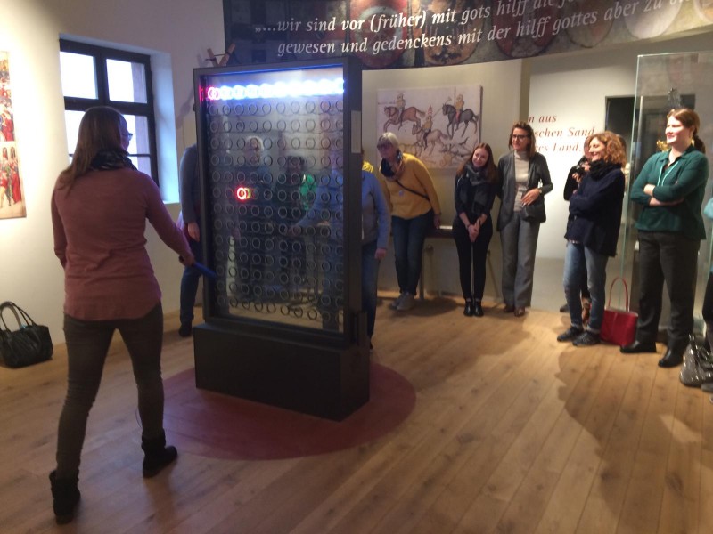 Dieses Jahr ging das Lehrerkollegium zusammen mit einigen Ehemaligen auf große Fahrt! Ziel der Reise war ein Besuch mit Führung in der Burg von Cadolzburg, die in den letzten Jahren aufwendig renoviert und mit einem sehr modernen Museumskonzept ausgestattet wurde. Multimedial und mit allen Sinnen konnte man riechen, schmecken, fühlen, tanzen, schießen, kämpfen und so manch Kurzweiliges über die Zeit des Mittelalters erfahren... kurzum so richtig eintauchen in die Welt der Ritter und Burgfräulein! Gerne wären wir noch länger geblieben, einige werden sicher noch einmal mit der eigenen Familie wiederkommen! Anschließend ließen wir uns in einer Gaststätte auch noch kulinarisch verwöhnen, bevor uns der Bus wieder sicher nach Schweinfurt zurückbrachte.