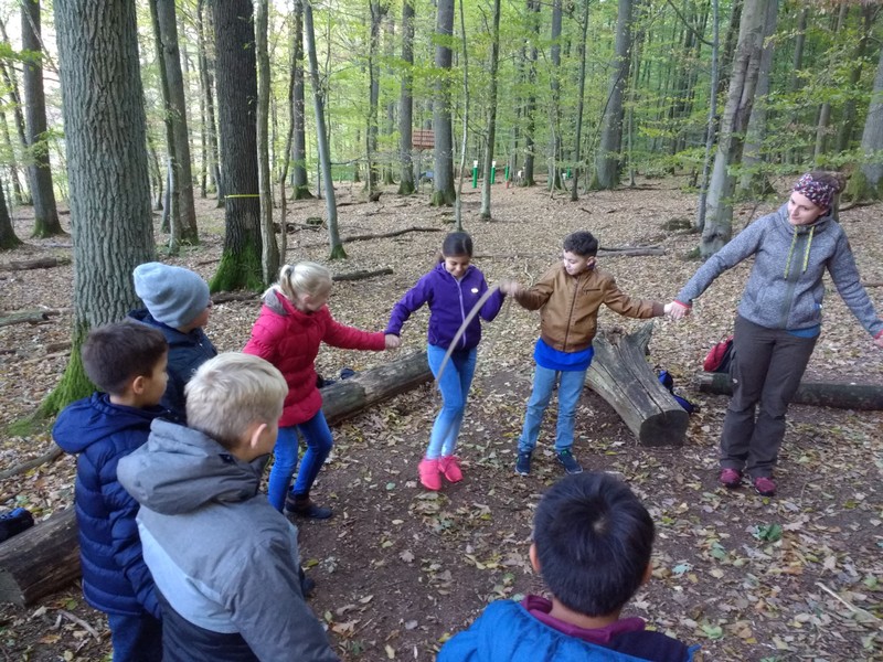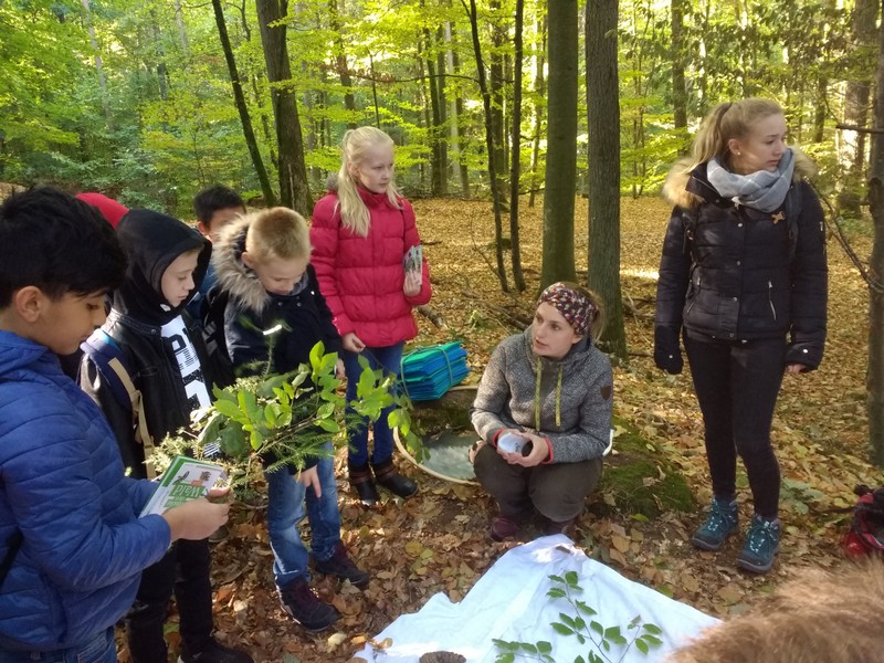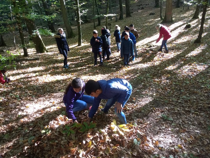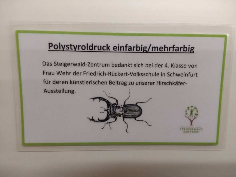 So beginnt ein Gedicht von Christian Morgenstern. Vielleicht hatte er, als er das Gedicht schrieb, den Steigerwald im Sinn. Denn als die Klassen 4a, 4b und 4c im Herbst 2018 das Umweltzentrum in Handthal im Steigerwald besuchten, raschelte es gewaltig im Blättermeer. Die Kinder lernten, welche Strategien Tiere anwenden, um zu überwintern, bestimmten verschiedene Baumarten und konnten bei Suchspielen tief im Laub wühlen. Gerade bei Kindern, die selten oder nie im Wald sind, hinterließ unser Ausflug besondere Eindrücke. Die Klassen 4a und 4b hatten sich auch mit im Unterricht selbstgefertigten Kunstwerken an der Ausstellung des Steigerwaldzentrums zum Thema Hirschkäfer. Mit Stolz stellten wir bei unserem Besuch fest, dass die besten Arbeiten im Zentrum ausgestellt waren. (N. Wehr)