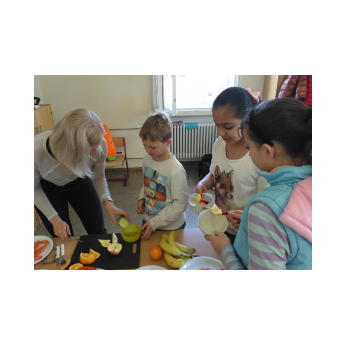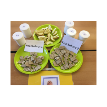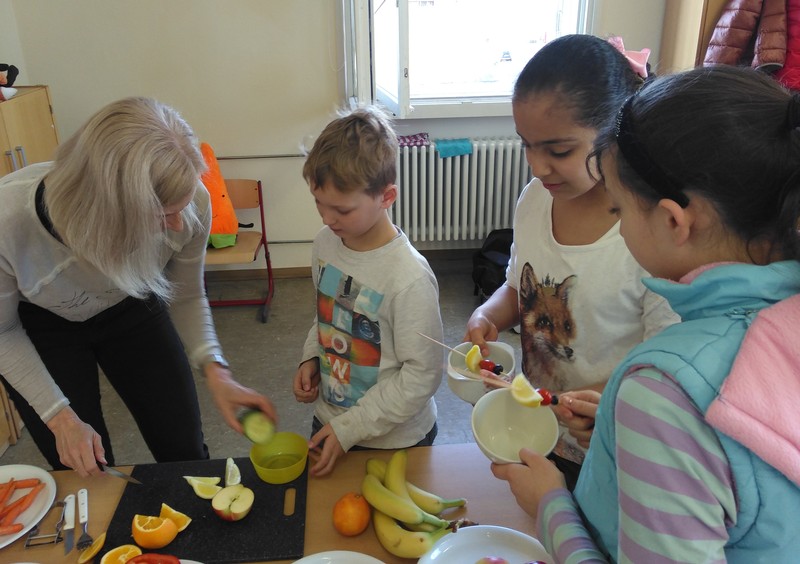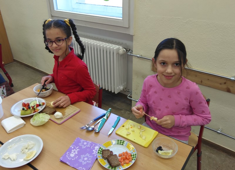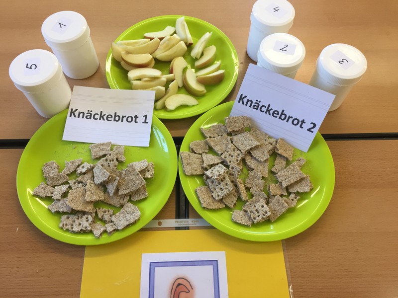 Im Auftrag des Rotary-Clubs Schweinfurt besuchten Frau Herrmann und Frau Schmid im Rahmen des gesunde-Kids-Projekts an zwei Tagen im März 2019 die Klassen 3a und 3b. Am ersten Termin haben wir ein gesundes Frühstück selbst gemacht. Aus vielen gesunden Zutaten durften wir uns aussuchen, was wir wollten. Es gab frisches Obst, Gemüse und Obstspieße. Nach langer, aber Spaß machender Zubereitungszeit durften wir endlich essen. Es wurden viele Fotos gemacht. Danach haben uns Frau Herrmann und Frau Schmid die Essenspyramide erklärt. Ein Mensch braucht am meisten Wasser, Zucker brauchen wir am wenigsten. Wir sollten jeden Tag nur sehr wenig Zucker zu uns nehmen. Vom Obst und Gemüse darf man hingegen viel essen. Beim zweiten Besuch von Frau Herrmann und Frau Schmid haben wir mit unseren Sinnen experimentiert. Jede Gruppe durfte Nahrungsmittel mit einem anderen Sinn erforschen. Mit dem Sehsinn sortierten wir unterschiedliche Äpfel, mit dem Tastsinn ertasteten wir, welches Obst in geschlossenen Säckchen lag. Unser Geschmackssinn wurde auf die Probe gestellt, als wir mit geschlossenen Augen die drei Farben der Paprika errieten. Auch lernten wir, dass man Essen hören kann, denn Knäckebrot kann je nach Lagerung unterschiedlich laut knacken. Schließlich sollten wir am Geruch erraten, welches Duftaroma sich in kleinen Dosen befand. Alle Kinder haben viel gelernt und hatten viel Spaß.