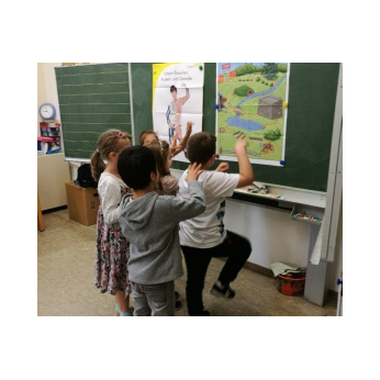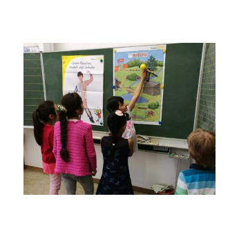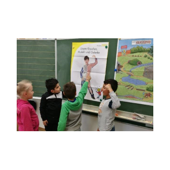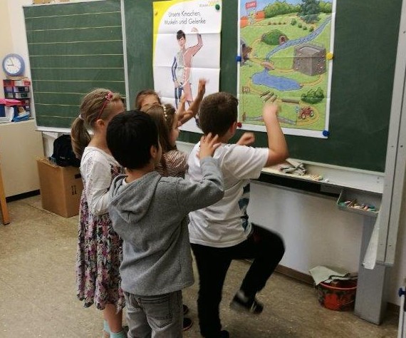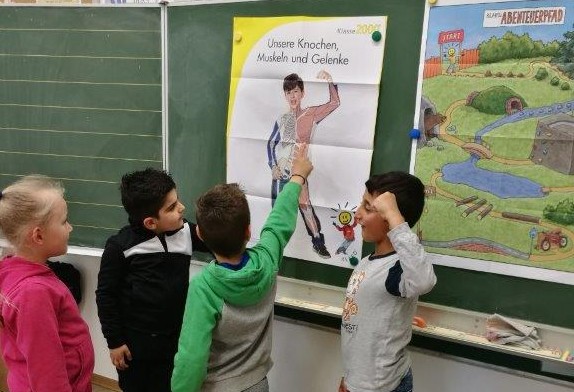 dem Maskottchen „Klaro“ erforschen die Kinder ihren Körper, z.B. ihre Atmung