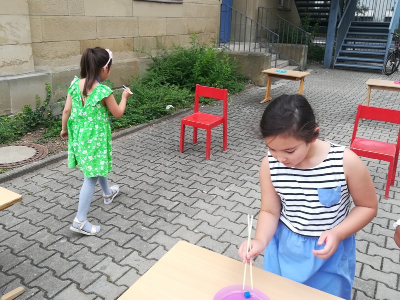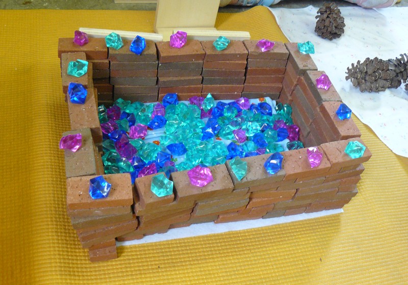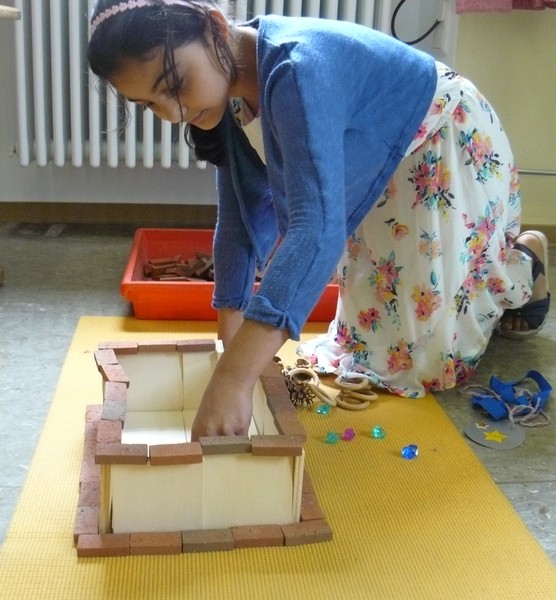 Am Sommerfest bauten viele kleine und große Baumeister in der Bauecke aus Steinen und kleinen Schätzen wahre Kunstwerke.