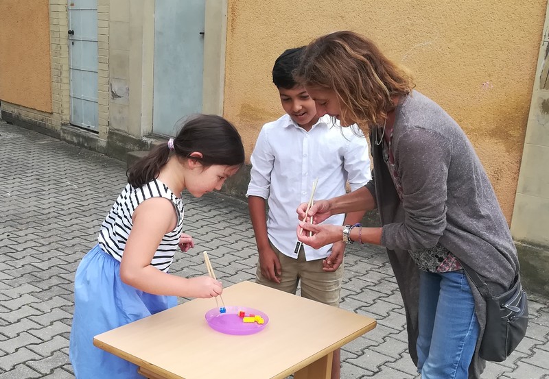 Die Schüler (und auch die Lehrerinnen) sind mit Begeisterung dabei und lernen
