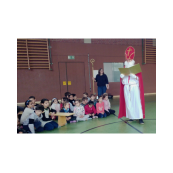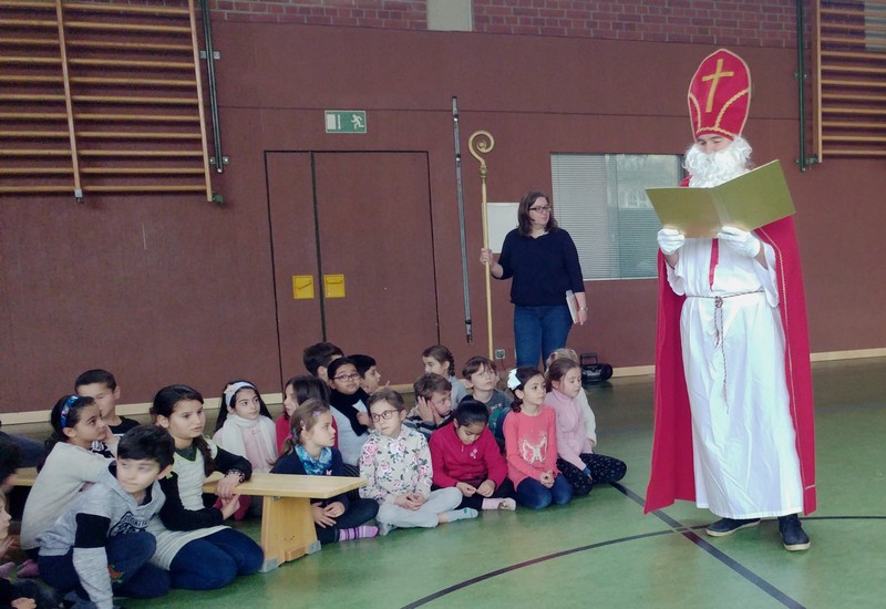 Auch im wahren Leben und nicht nur in den phantasievollen Geschichten rund um das Sams erkrankt der Nikolaus. So verspätete sich „unser“ Nikolaus ein kleines bisschen und besuchte die Kinder der Rückertschule erst einen Tag nach dem eigentlichen Nikolaustag. Wie jedes Jahr hatte er viel Lob, aber natürlich auch einige „Verbesserungswünsche“ in seinem goldenen Buch stehen. Die Kinder versprachen Besserung und wurden mit Schokolade und Mandarinen belohnt. Ein herzliches Dankeschön an den Nikolaus und die fleißigen Hände, die ihm beim Packen der Säcke geholfen haben.
