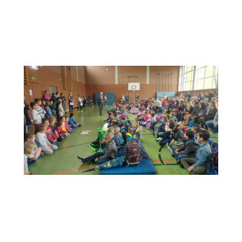 Auch in diesem Jahr war wieder Herr Großkopf - Klopf von der Bundespolizei in den vierten Klassen zu Besuch, um den Schülern etwas über die Gefahren im und am Bahngleis zu erzählen. Alle Kinder freuten sich sehr auf den Besuch des Polizisten und warteten gespannt, um ihre vorbereiteten Fragen stellen zu können. Zu Beginn sahen die Viertklässler einen Film, in dem drei verschiedene Gefahrensituationen an Bahngleisen thematisiert wurden. Man merkte den Kindern ihre Betroffenheit über diese kurzen Szenen an. Zusammen mit Herrn Großkopf – Klopf überlegten sie Maßnahmen, solche Situationen zu verhindern. Genauso bekamen sie Möglichkeiten gezeigt, wie sie sich Hilfe holen können. In einem zweiten Film sahen die Schüler, wie lebensgefährlich eine Mutprobe auf Gleisen sein kann. Auch hier sprachen sie darüber, dass es sehr unüberlegt ist, sich in so eine Situation zu begeben. Auf verschiedenen Bildern beschrieb der Bundespolizist weitere Gefahrensituationen, zum Beispiel, warum es so gefährlich ist, Steine auf die Schienen zu legen oder warum man nie Selfies auf Bahngleisen machen darf. Anschließend ging die ganze Klasse zum nahegelegenen Bahnhof Haltepunkt Mitte, um das Gehörte vor Ort nochmals zu verdeutlichen. Hier beantwortete Herr Großkopf – Klopf auch viele Fragen der Kinder. Gemeinsam warteten alle auf die heranfahrenden Züge und stellten fest, dass diese wirklich erst sehr spät zu hören sind. Zum Schluss durften die Viertklässler noch das Polizeiauto genauer anschauen, das Blaulicht betätigen und sogar im Dienstwagen Platz nehmen. Auch die Ausrüstung des Polizisten nahmen die Schüler genau in Augenschein. Herzlichen Dank, Herr Großkopf-Klopf für diei sehr interessanten Schulstunden!