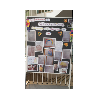 Das Kulturforum der Stadt Schweinfurt veranstaltete einen Kreativwettbewerb zu ihrem wohl bekanntesten „Sohn“, dem Dichter, Übersetzer und Orientalisten Friedrich Rückert. Insgesamt beteiligten sich 9 Schweinfurter Schulen mit 23 Klassen der Jahrgangsstufen 1 bis 10. Am 13. Februar 2020 wurden in der Ausstellungshalle des Alten Rathauses die besten Schülerarbeiten in den jeweiligen Jahrgangsstufen gekürt. Die Auszeichnung, überreicht durch Herrn Oberbürgermeister Sebastian Remelé, ging in der Altersgruppe der Erst- und Zweitklässler an die Klasse 1a unserer Schule. Über die Auszeichnung und das Preisgeld für die Klassenkasse haben sich alle Kinder der 1a mit ihrer Klassenleiterin Frau Bankmann-Lamprecht sehr gefreut. Übrigens wurden alle eingereichten Schülerarbeiten in einer Ausstellung der Öffentlichkeit präsentiert.